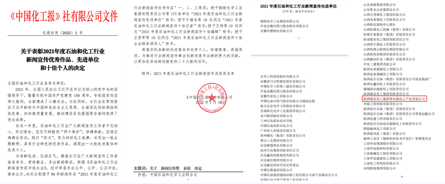 訪問次數:3743近日,從《中國化工報》社有限公司獲悉,神木煤化工公司被授予“2021年度石油和化工行業新聞宣傳先進單位”稱號。 2021年以... -
