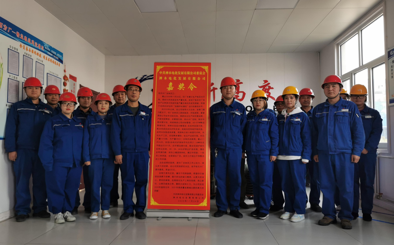 11月26日,電化公司提前35天完成年度40萬噸電石生產任務,一場具有特殊紀念意義的嘉獎令頒發儀式在該公司電石分廠精彩上演。