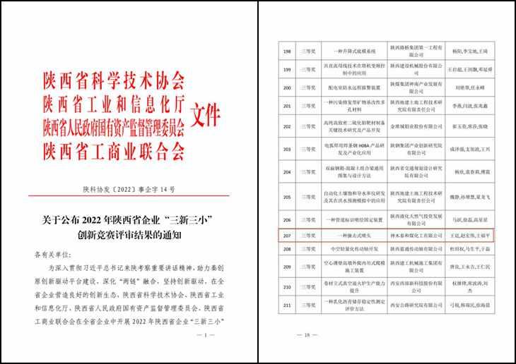 泰和公司榮獲2022年陜西省“三新三小”創(chuàng)新競賽三等獎