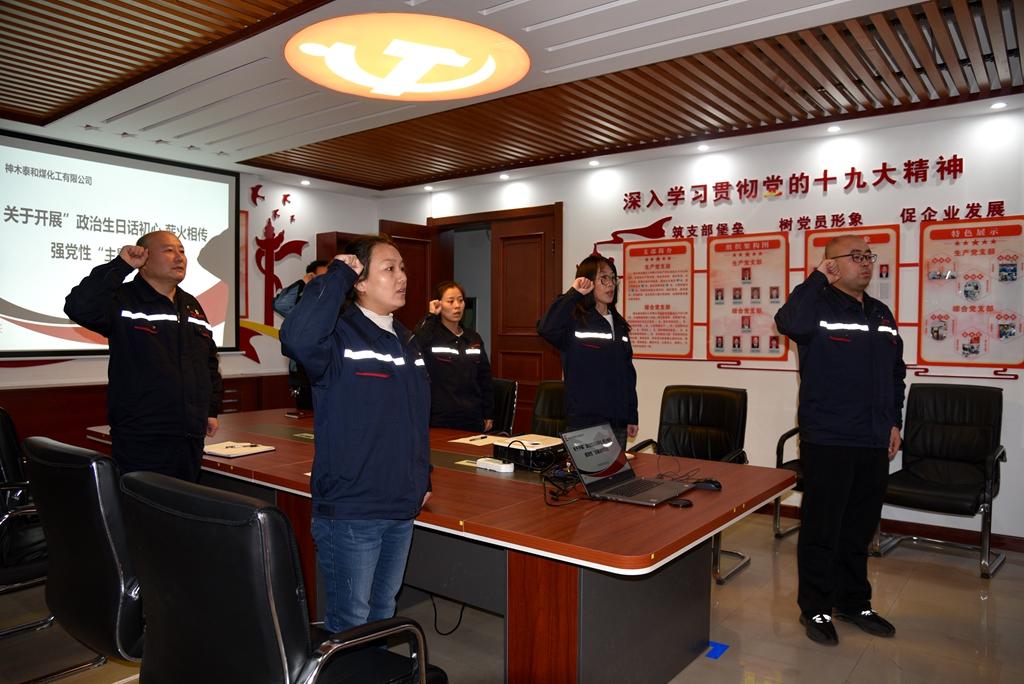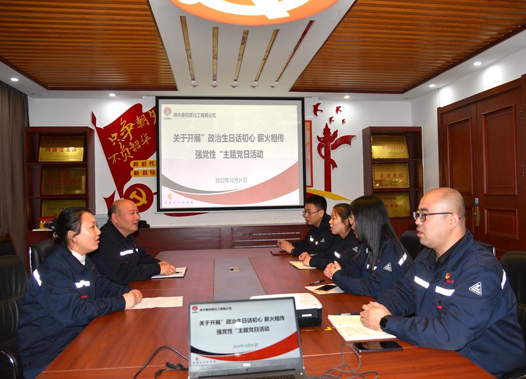 10月31日,神木煤化工泰和公司綜合黨支部在四樓黨員活動(dòng)室,舉行“政治生日話初心,薪火相傳強(qiáng)黨性”主題黨日活動(dòng),活動(dòng)由支部書記葉萍主持,支部全體黨員參加了活動(dòng)。