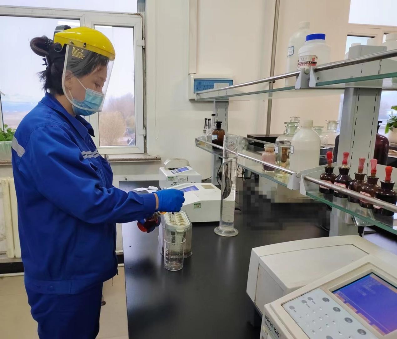 “小李,你的頭發(fā)沒有完全放進安全帽里”“小王同志,倒廢液時要戴面罩,看風向站位”。她不僅僅不讓自己大意,她還叮囑著身邊人。她用她的安全信念影響著身邊的每一個人,大家都視她為水質(zhì)分析安全顧問。