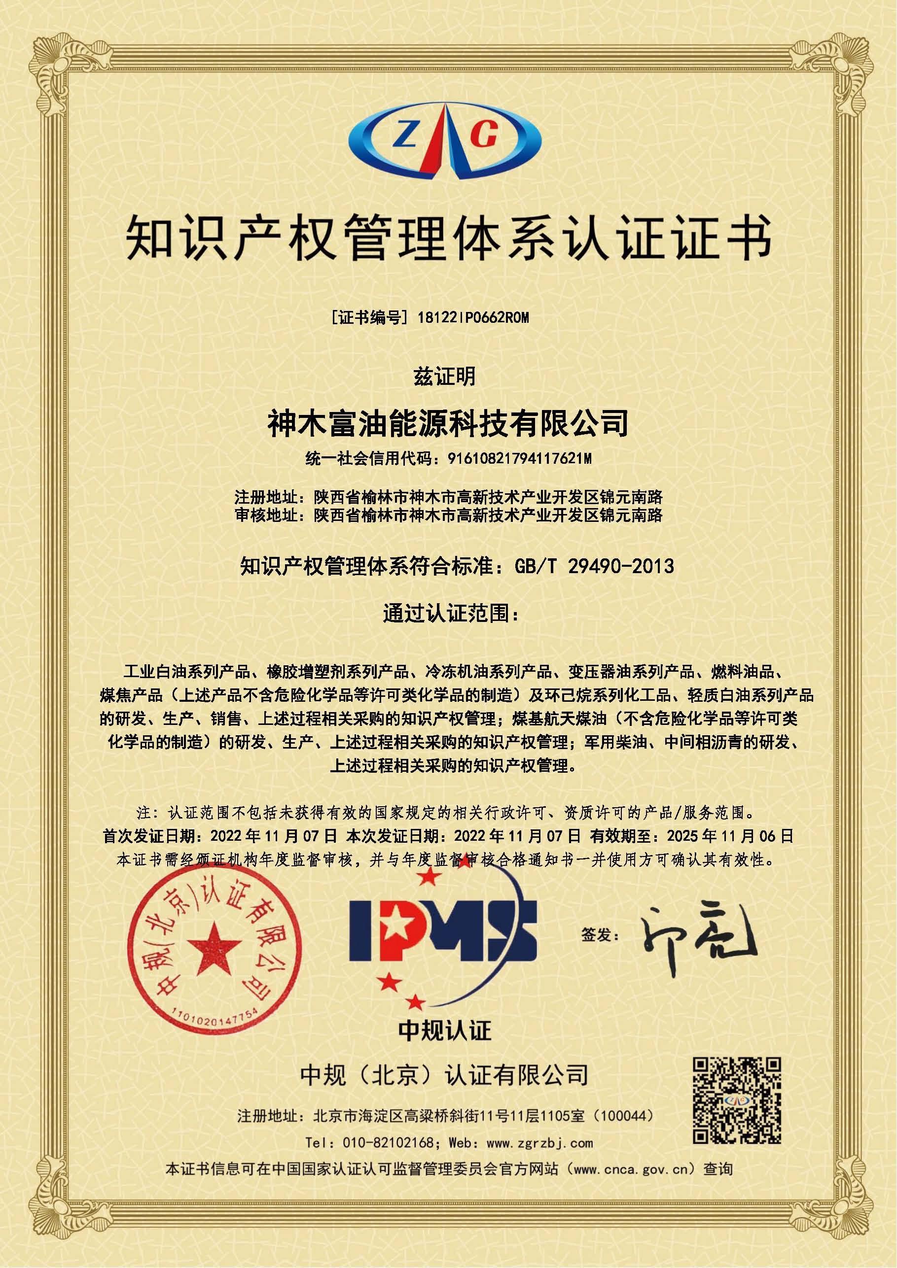 11月7日,神木煤化工富油公司順利通過知識產權管理體系審核認證,獲得《知識產權管理體系認證證書》,標志著富油公司知識產權管理工作邁入全面提升新階段。