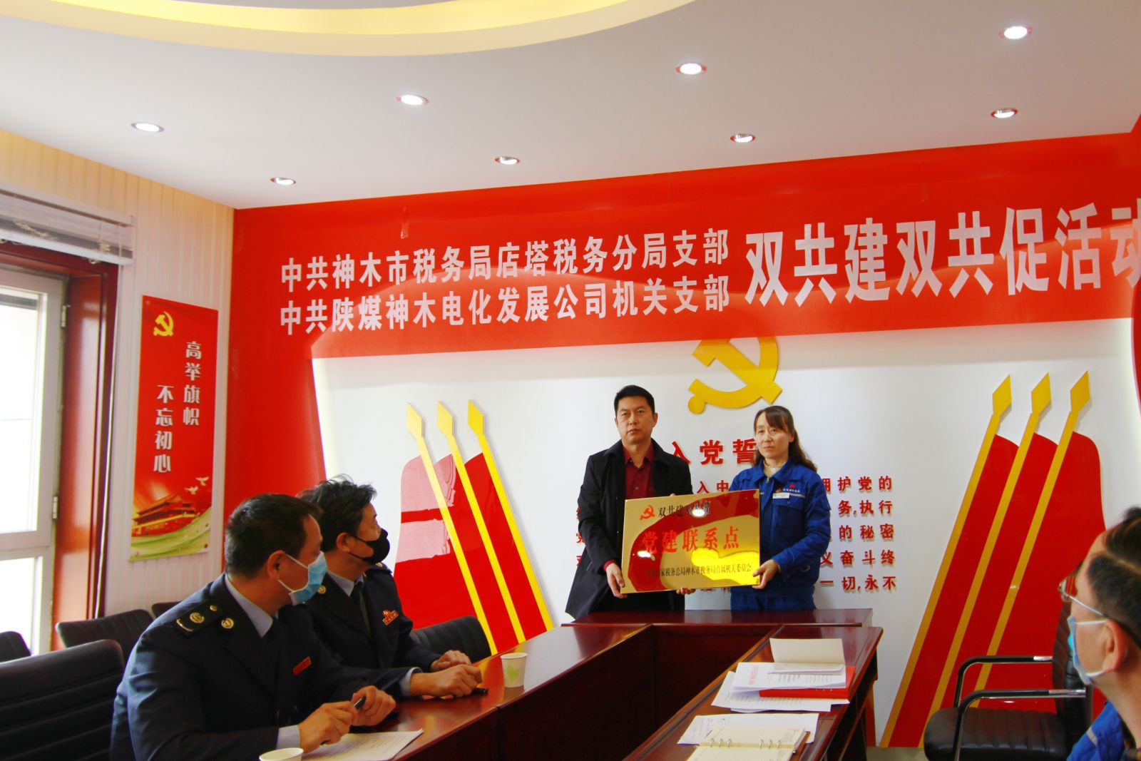 3月26日,神木市稅務(wù)局店塔分局支部與神木煤化工電化公司機(jī)關(guān)黨支部舉行“雙共建雙共促”黨建結(jié)對(duì)啟動(dòng)儀式,在神木煤化工電化公司辦公樓五樓黨群活動(dòng)陣地舉行。神木市稅務(wù)局黨委委員、副局長(zhǎng)張軍,店塔分局支部書記劉維凱,黨辦主任韓建強(qiáng),神木煤化工電化公司財(cái)務(wù)總監(jiān)陳曉華,黨群工作部負(fù)責(zé)人賀海霞,機(jī)關(guān)黨支部副書記白占爭(zhēng)及雙方黨員代表出席活動(dòng)。
