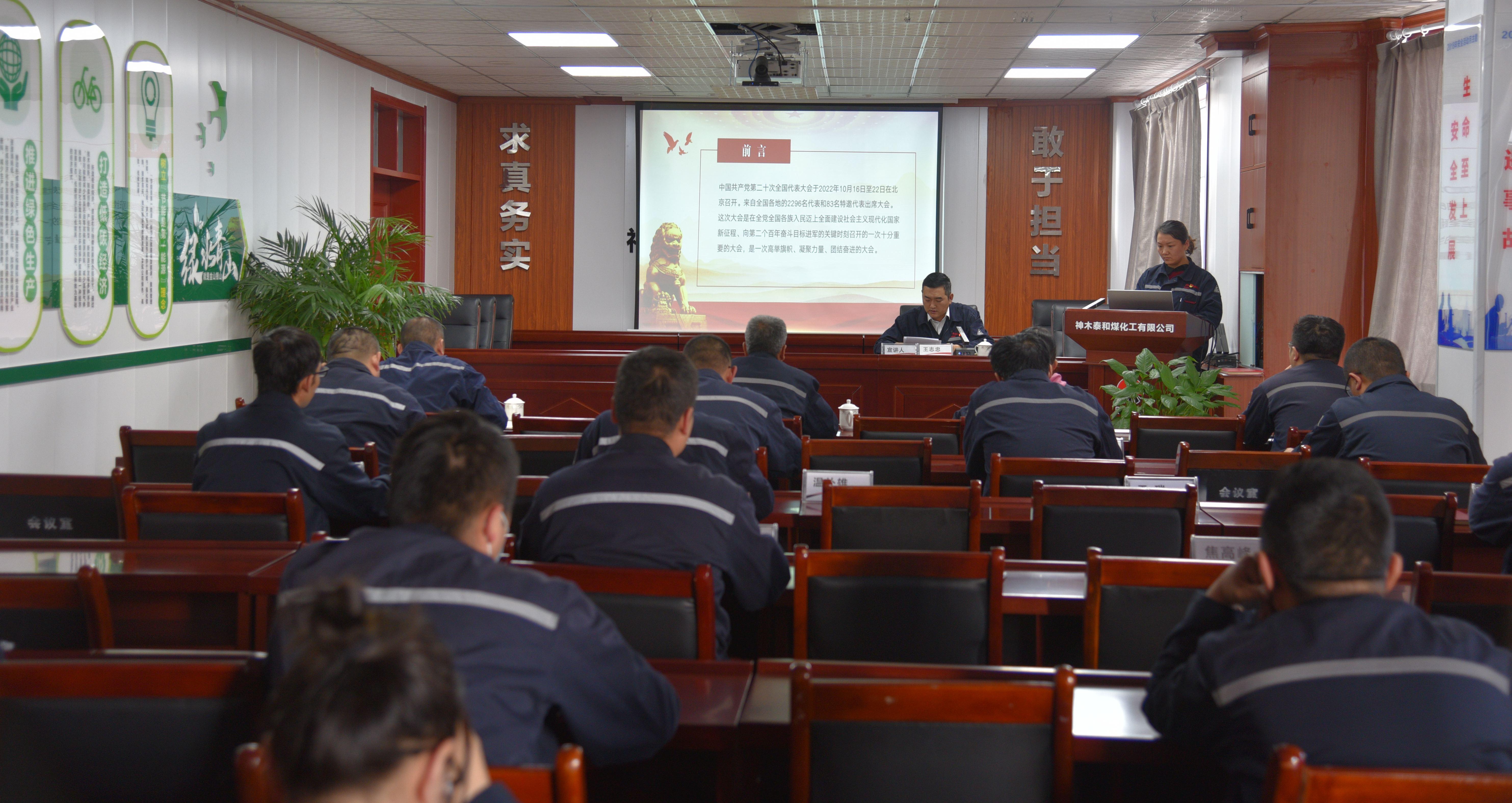 11月20日,神木煤化工泰和公司在五樓會議室召開學習宣傳貫徹黨的二十大精神專題會議。領導班子,中層管理人員及機關全體人員參加了會議。