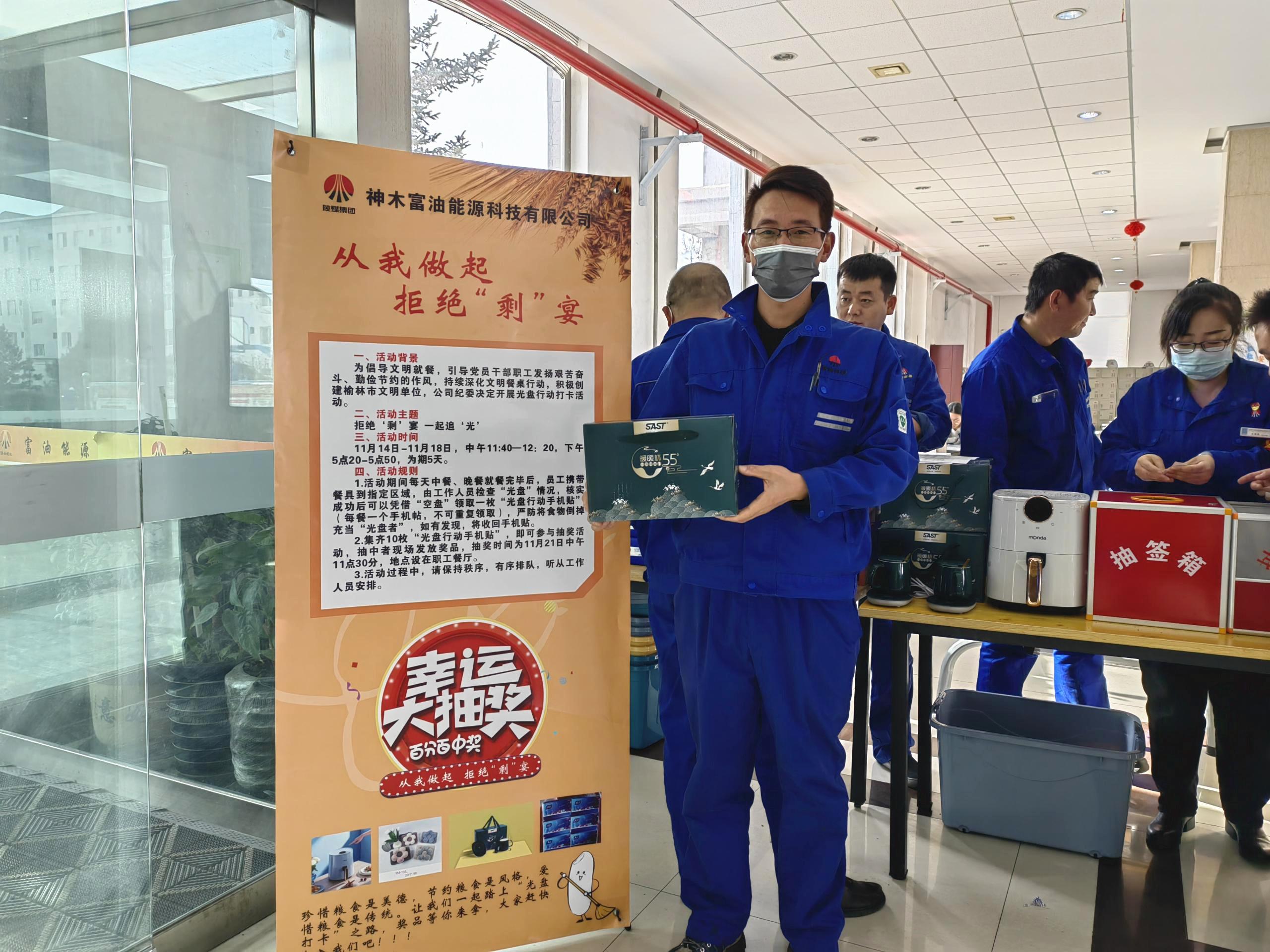 “我已經連續5天光盤,獲得了紅、橙、藍、綠、紫五種顏色卡共10張,希望能抽到大獎?!背楠劕F場的一名青年員工說?!肮挥写螵?,今天抽到了老婆心心念的空氣炸鍋,真開心??!在今后的工作和生活中,我將用自身的實際行動帶動我周圍的同事、還有我的家人杜絕舌尖上的浪費?!北_\中心蘇永紅開心的說。