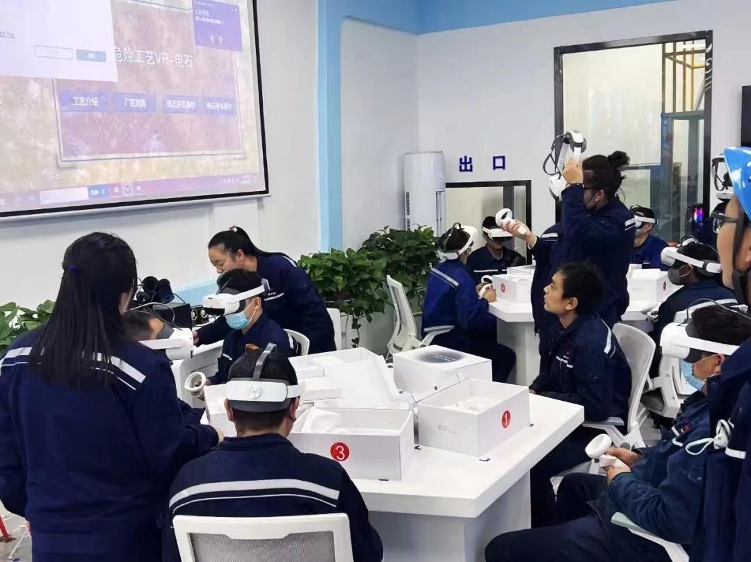 今年6月,電化公司實訓基地建成并投運。實操培訓區包括泵與風機培訓、焊接培訓、電氣儀表培訓、化驗分析培訓及鉗工培訓;工藝仿真區配備電腦36臺,可實現鍋爐、汽機、電氣、燃運、環保、化水、熱控、電石控制系統等為仿真對象的1:1全范圍、全過程、高逼真度的仿真培訓功能;安全體驗區建設有受限空間實操培訓功能、AR設備認知體驗、危險工藝VR實訓考核、VR事故傷害警示教育體驗等10項功能設施。實訓基地的建設是本著把企業當學校辦,把員工當學生教的理念,建設具有電化公司特色的培訓實訓基地,使員工在訓練中不斷提高技能水平。