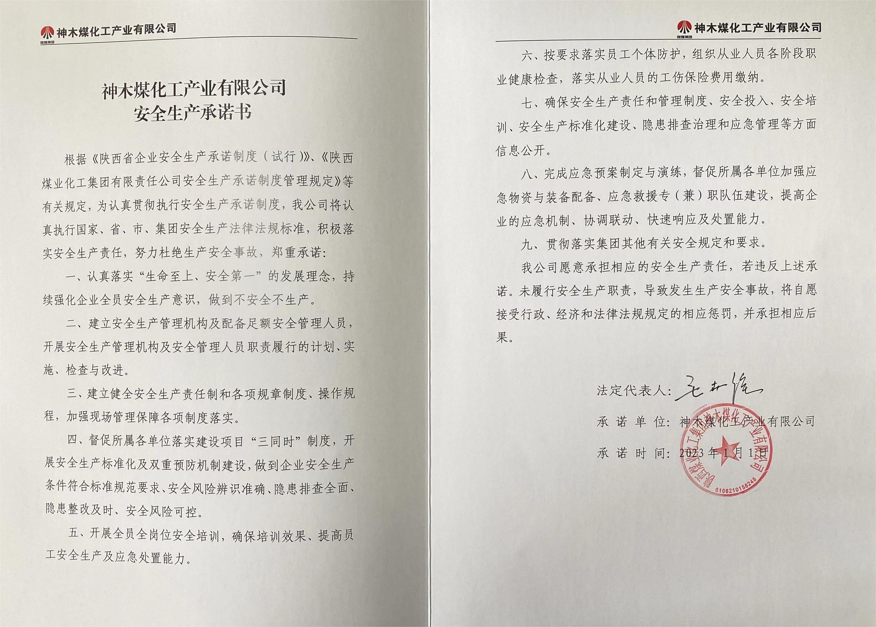 神木煤化工產(chǎn)業(yè)有限公司2023年度安全生產(chǎn)承諾書公示