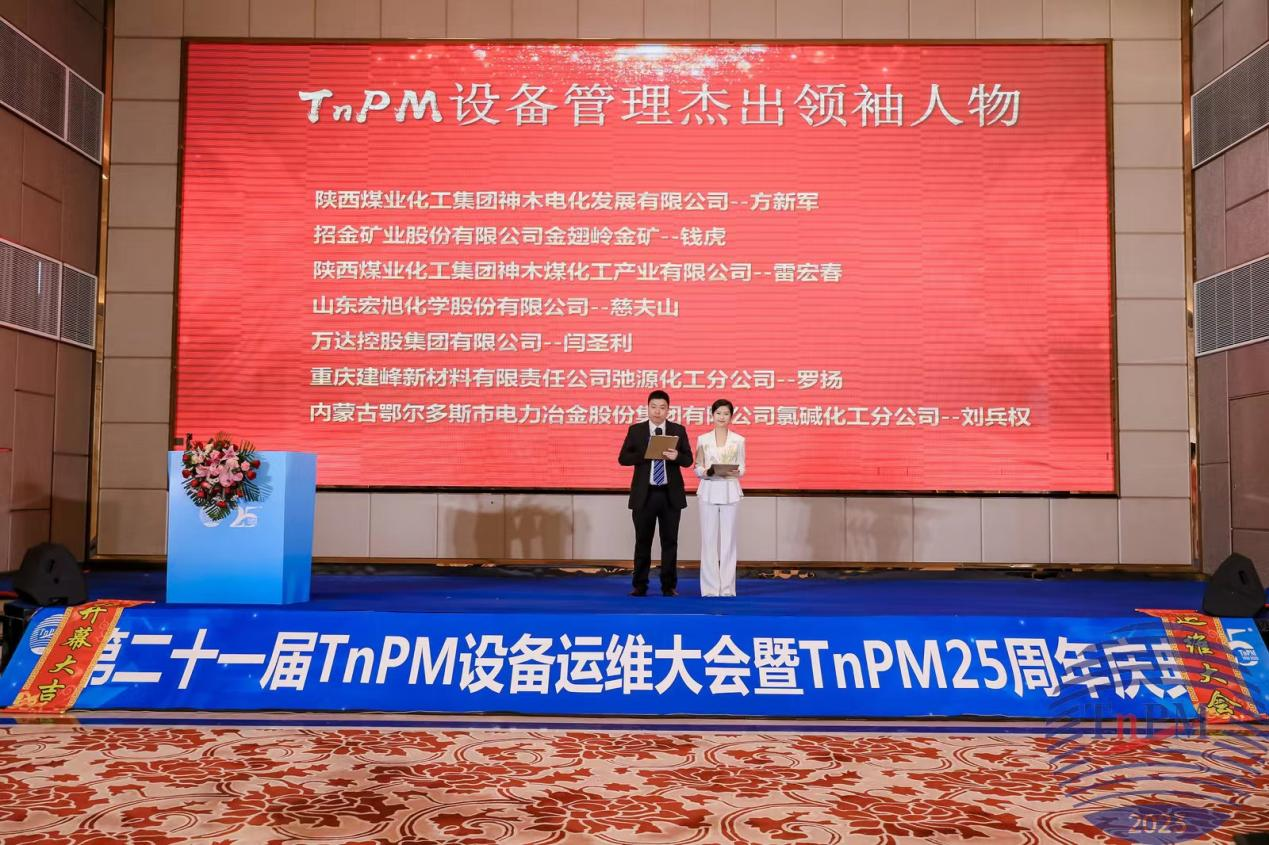近日,在中國設備管理協會國際合作交流中心主辦的第二十一屆TnPM設備運維大會暨TnPM25周年慶典上,公司及所屬電化公司獲得TnPM設備管理優秀企業,總經理雷宏春等6人獲得TnPM設備管理杰出領袖、卓越推進者、優秀設備工匠等榮譽稱號,所屬電化公司三車間獲得CTPM推進成果展示三等獎的優秀成績。(王翔)