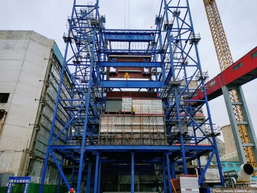 趕著春天的腳步,電化公司已迅速按下項目建設“加速鍵”。1×25MW(3#)機組超低排放和節能降耗改造項目背壓汽輪機已進入調速系統、油系統調試階段;260t/h循環流化床鍋爐主體鋼架全部安裝完成,鍋爐受熱面已進入全面安裝階段,其中空預器吊裝完成,返料器吊裝就位,施工現場一派大干、實干的繁榮景象。