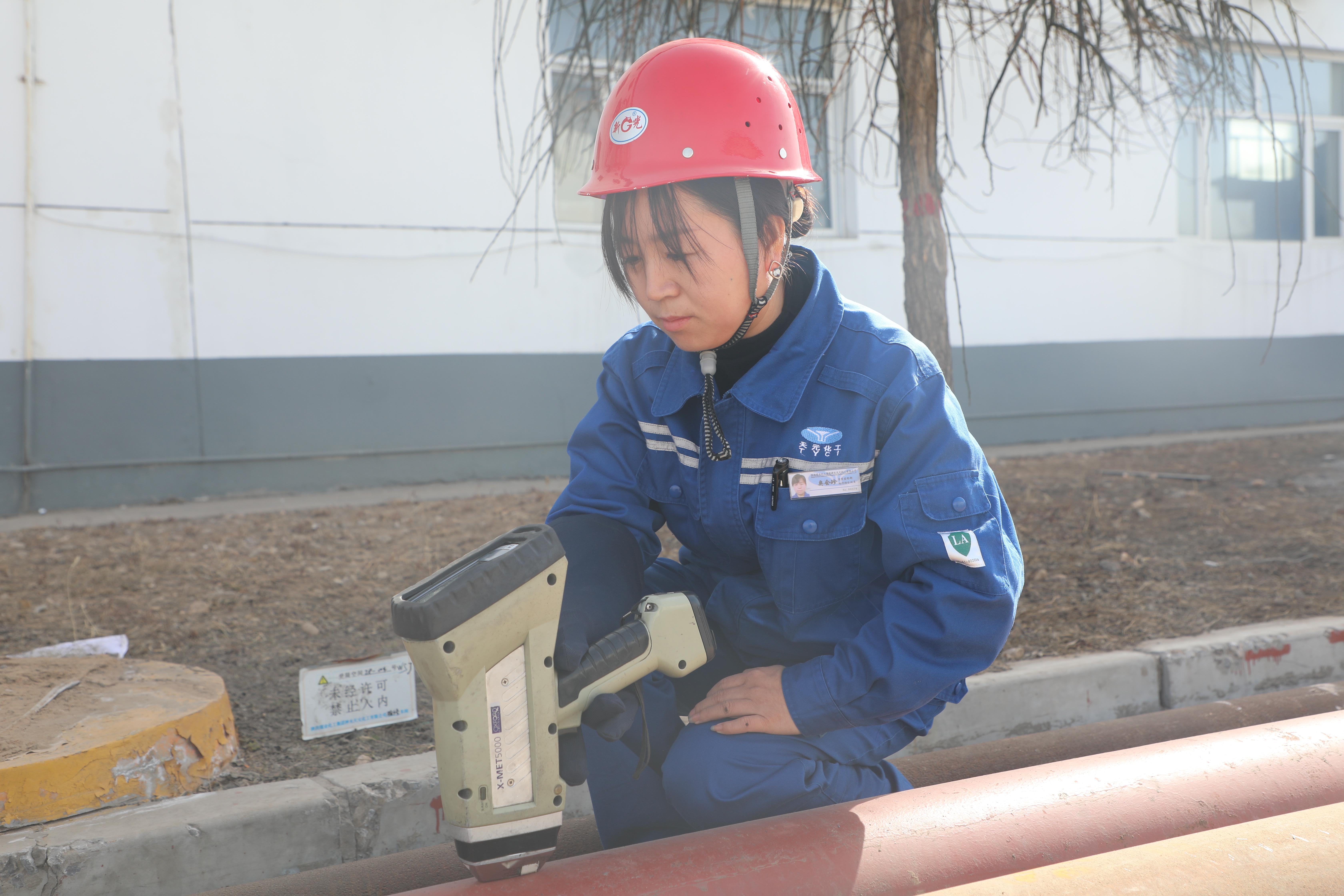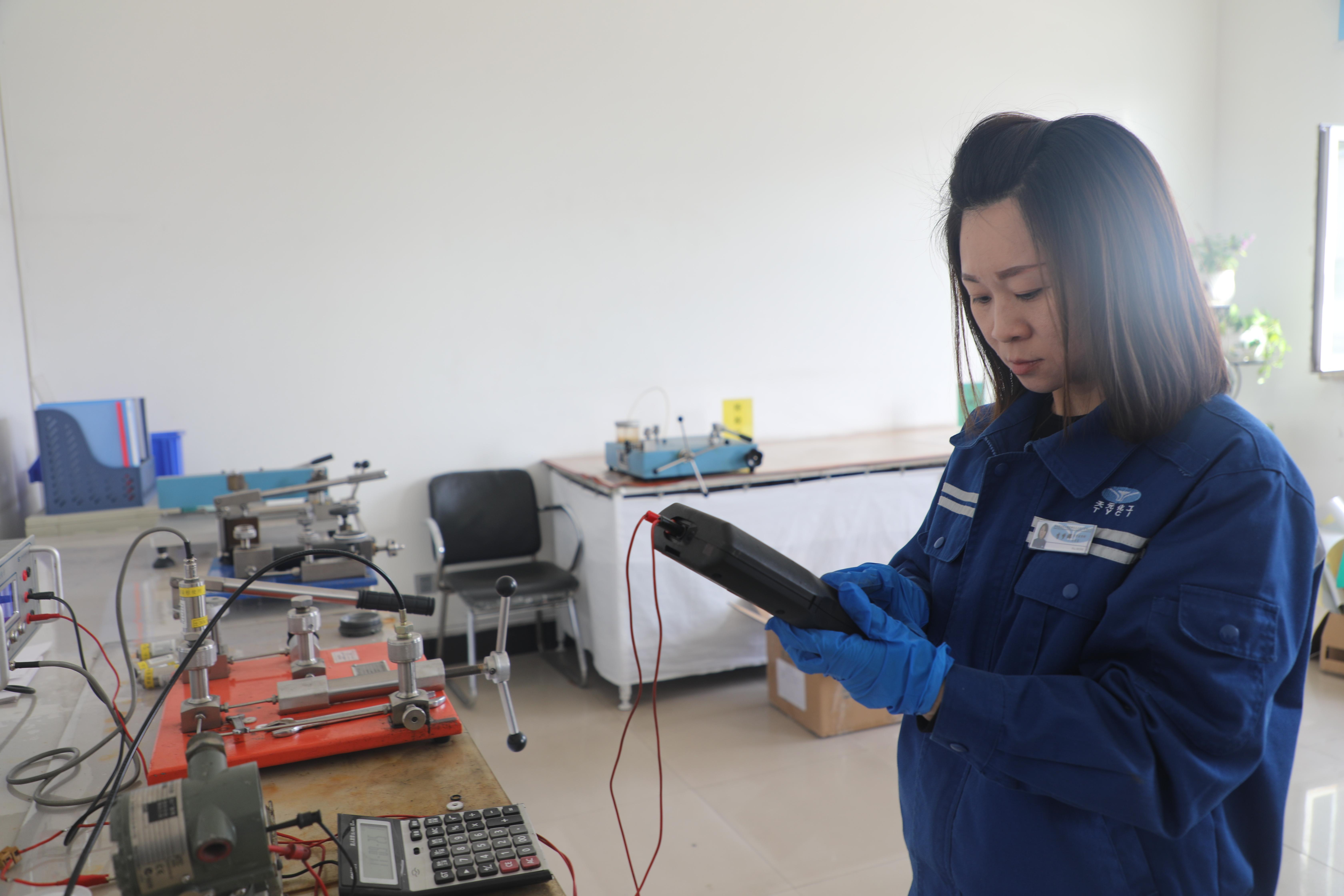 質量監督部李夢娜在檢定壓力變送器