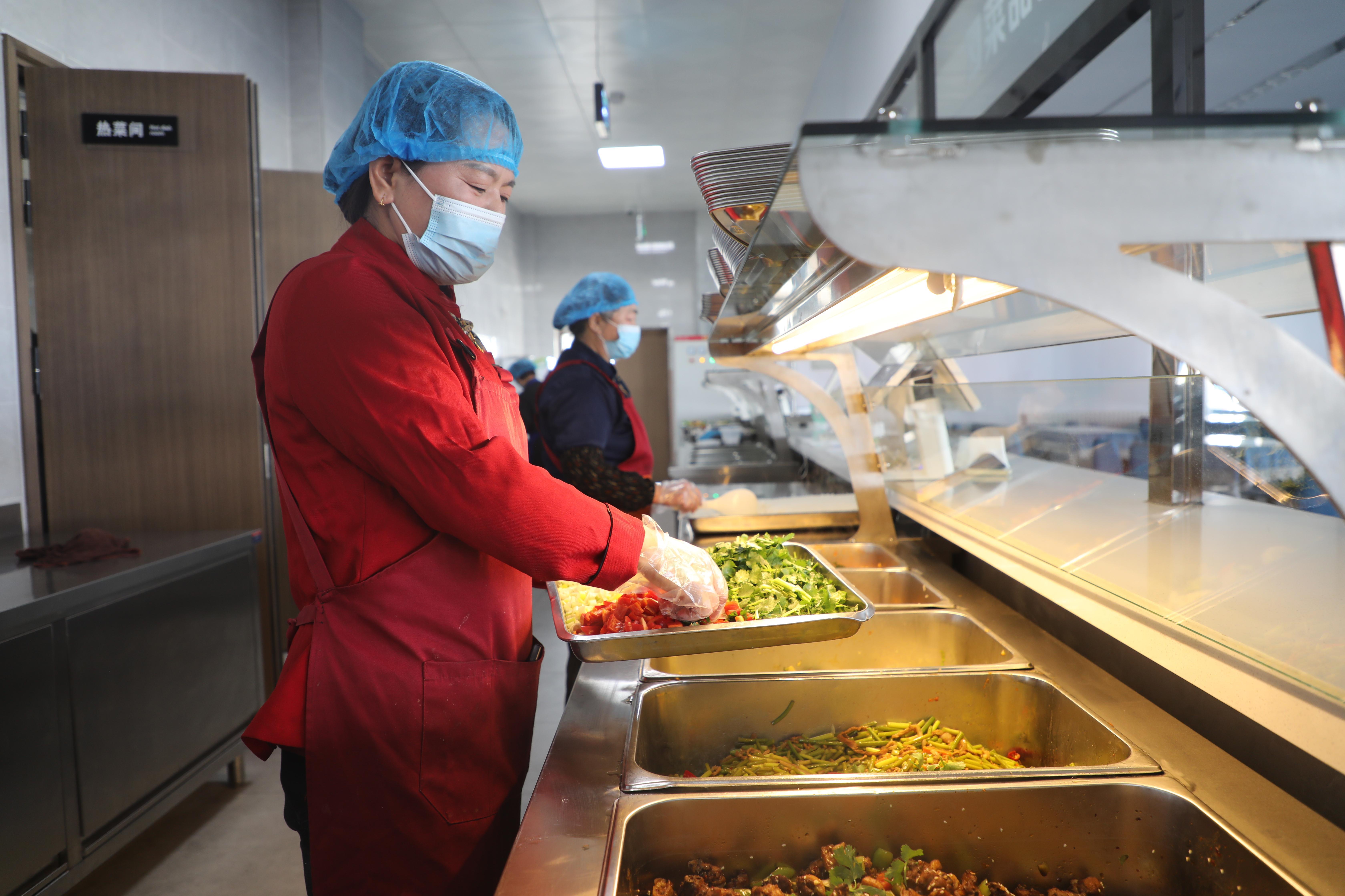 食堂工作人員為職工精心準備午餐