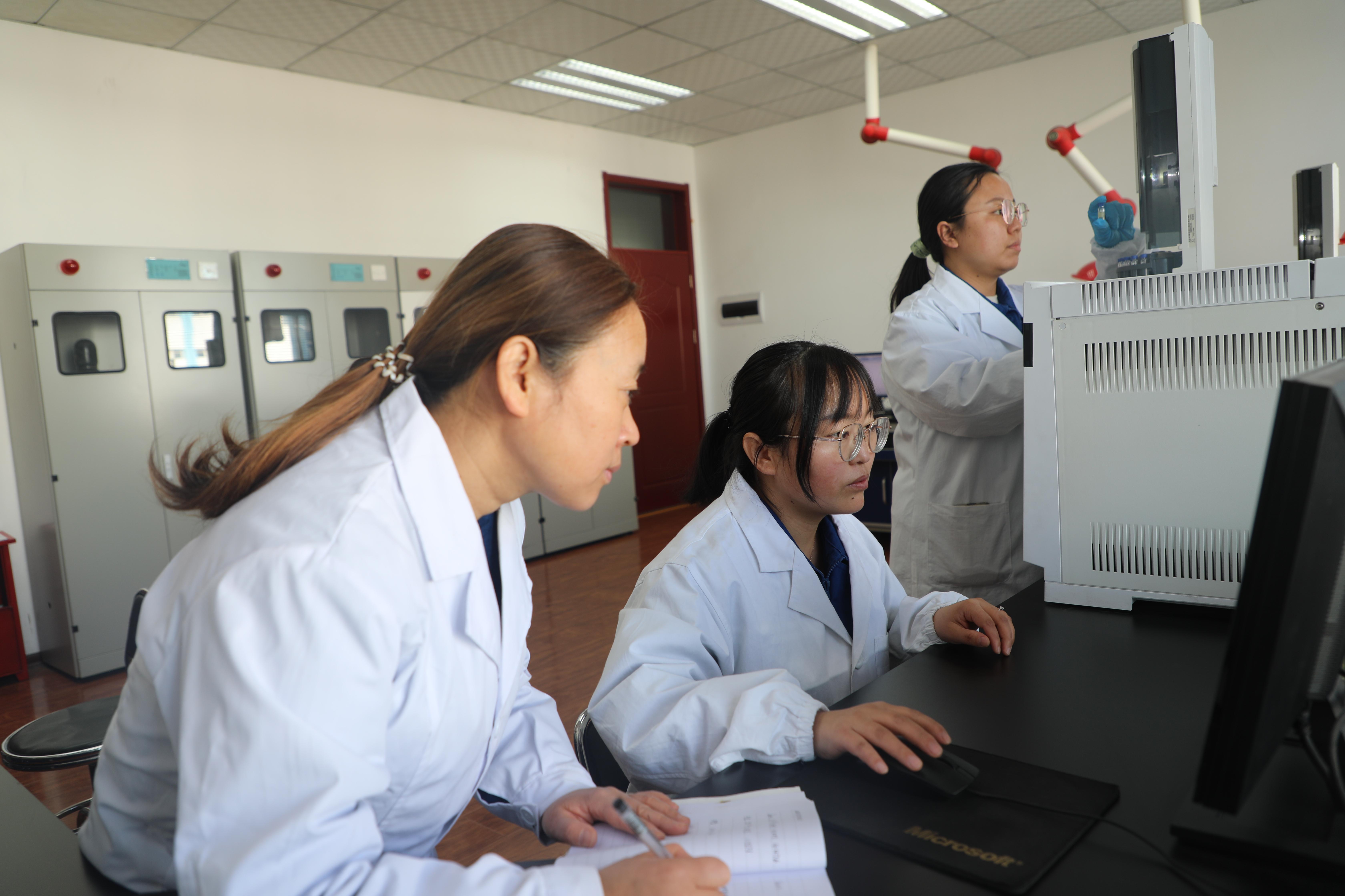 技術研發中心高婷、鄭小霞和王軍妮在測定油品分子組成