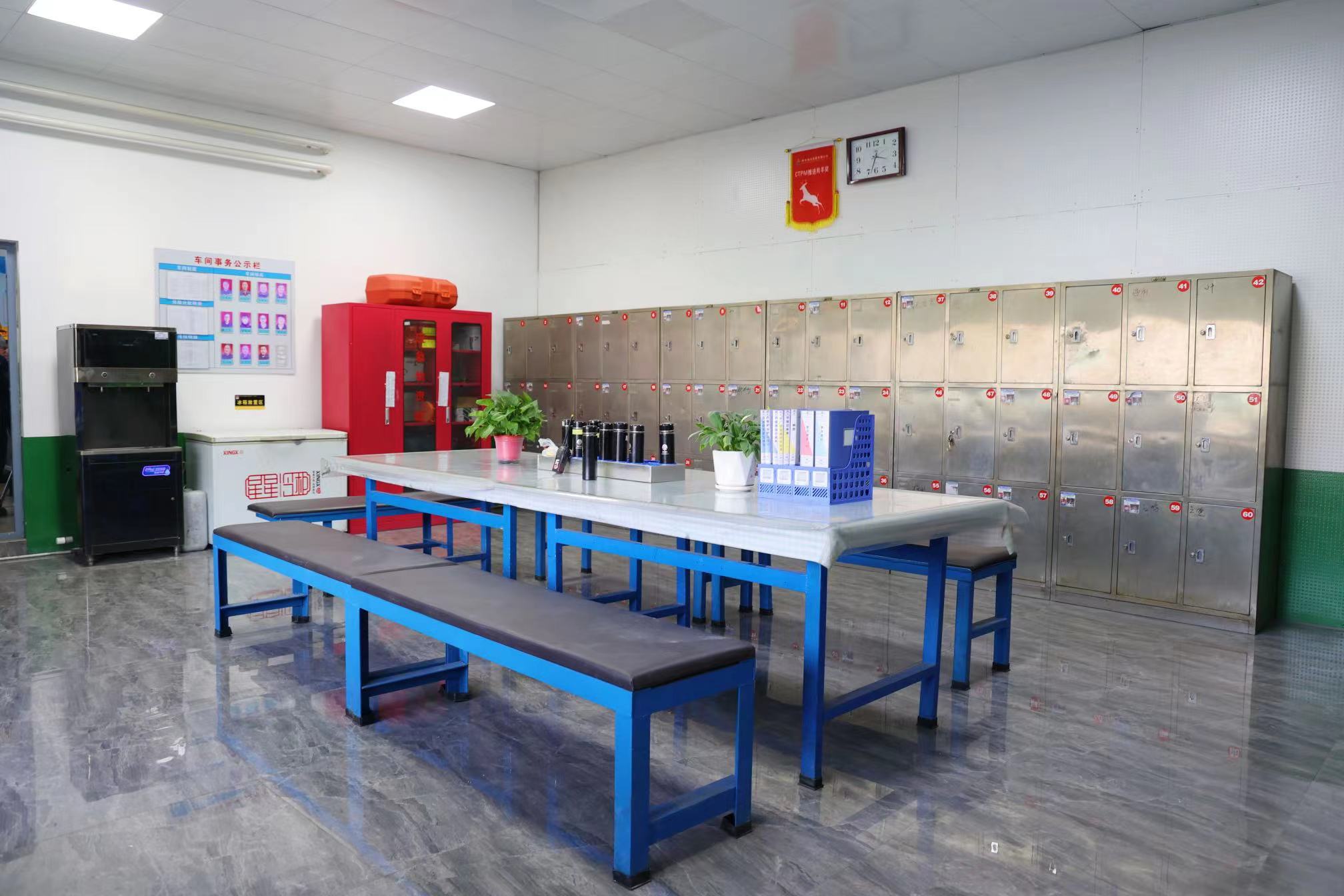 休息室對生產一線職工而言是高強度工作之后的放松地,是疲憊后舒緩壓力的港灣。近日,神木煤化工電化公司掀起了美化車間的熱潮,張小平變身“粉刷匠”利用休息時間為車間一樓至四樓的所有防護欄、樓梯、生產設備刷漆,重新布置了出爐工休息室。光滑大氣的地板來自舊區廢棄地板磚重新拋光打磨后重見天日,精致美觀的皮質椅子是手工包制完成的,安全帽放置架和衣架DIY是用鋼材焊接的。在一間不大的休息室內,因地制宜配備了冰箱、微波爐、餐桌椅、儲物柜等生活必需品,為職工提供舒適衛生的休息環境。