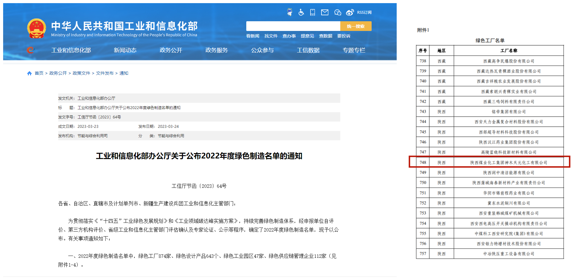 近日,從工業(yè)和信息化部辦公廳下發(fā)的《關(guān)于公布了2022年度綠色制造名單的通知》獲悉,神木煤化工天元公司獲批國(guó)家級(jí)綠色工廠。