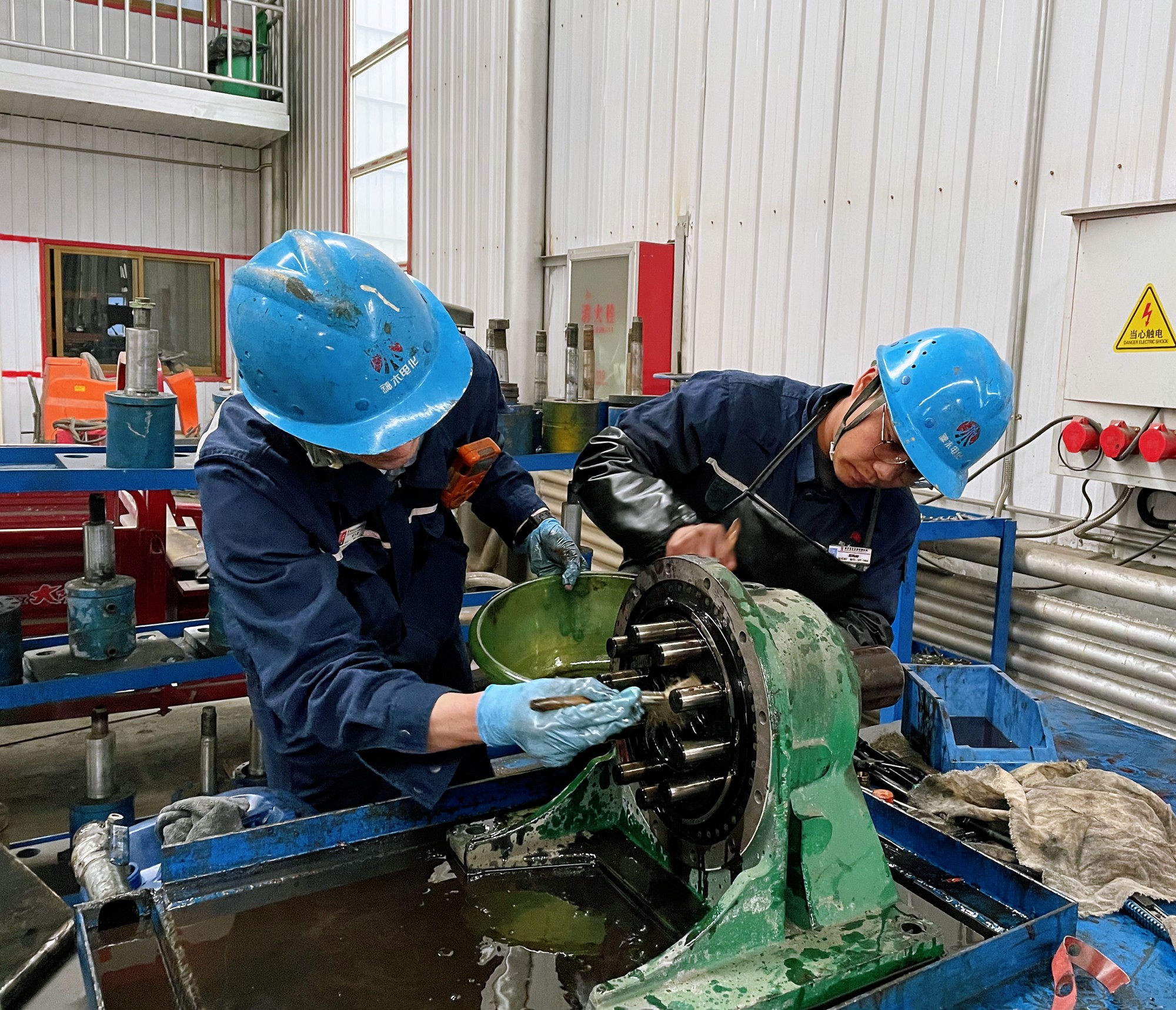 在電石分廠檢修車間內,檢修工尚小剛和搭檔郄帥帥正對一臺減速機進行拆解操作。“這臺減速機箱體已經損壞,但里邊的軸、軸承、油封這些部件可以進行再利用。那邊有我們今天上午組裝完成的兩臺減速機,節約了不少費用。”他們邊埋頭苦干邊向筆者介紹道。在電動扳手、鐵錘、刷子等工具的揮動下,他們松螺栓、分機體、清洗部件,經過幾番周折后一臺減速機已成功解體。隨后,他們將拆解下來的各個部件進行重新組裝,再刷上油漆,一臺煥然一新的減速機就可以重新上崗了。