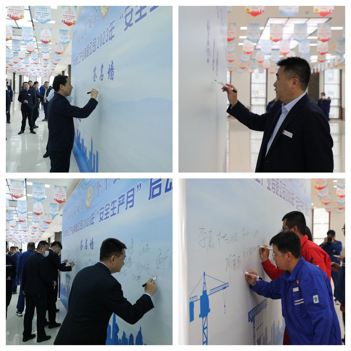儀式上,神木煤化工公司黨委副書記、工會主席辛文輝帶領全體參會人員進行安全宣誓;神木煤化工公司副總經理問緒忠安排部署了“安全生產月”重點工作;能源公司黨委書記、董事長張進峰代表基層單位作表態發言;全體與會人員在簽名墻上簽名。