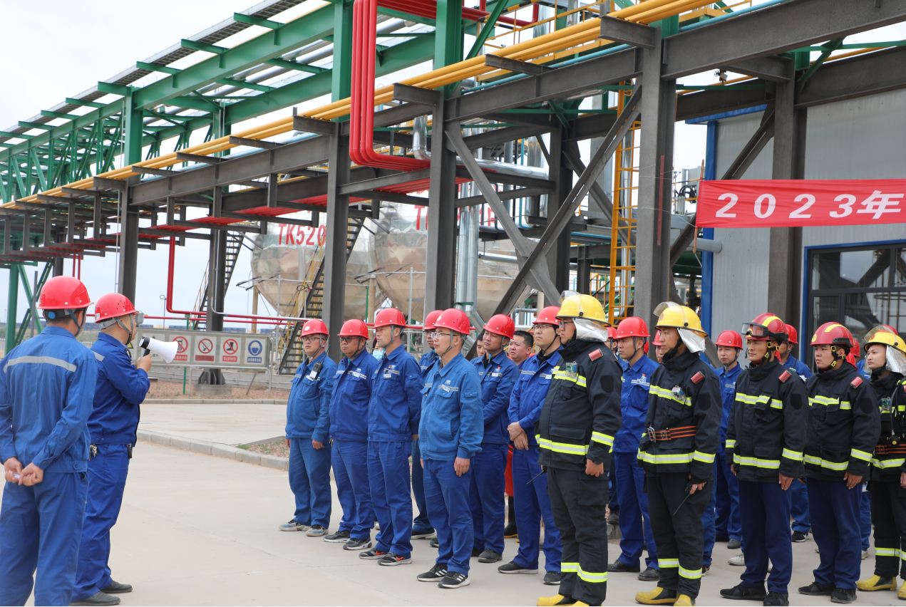 為扎實開展2023年“安全生產月”活動,近日,神木煤化工天元公司在罐區車間液氨球罐區開展液氨泄漏公司級綜合應急預案演練,天元公司黨委副書記、總經理王勇,黨委委員、副總經理尚德霖,安全總監王小龍參與演練,安全環保部全體人員、各車間部分員工現場觀摩。