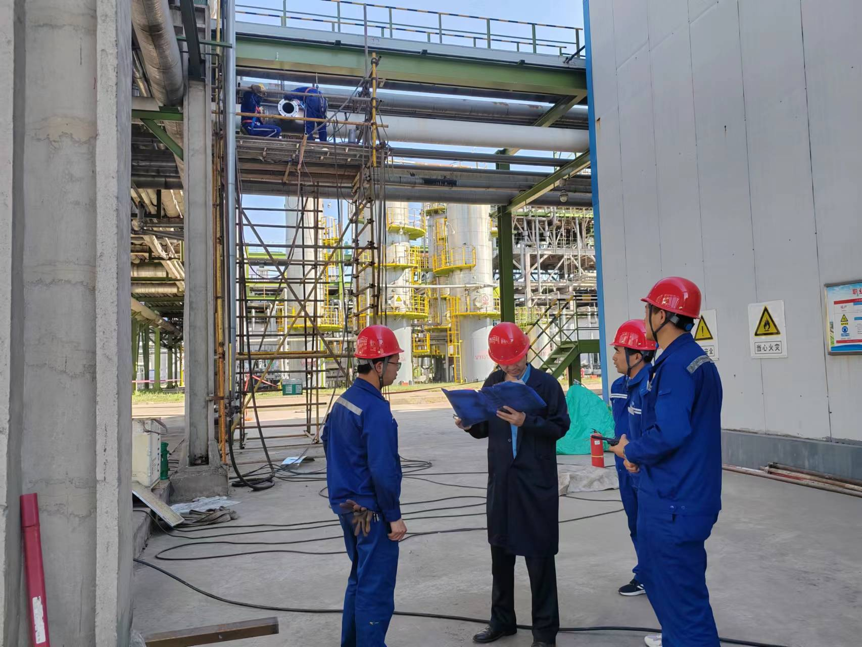 6月14日,神木煤化工公司副總經理問緒忠到天元公司檢修現場督導檢修開展情況及安全措施落實情況,并與檢修負責人、技術人員就檢修進度、過程節點控制、檢修組織方式、承包商管理、目前檢修存在的問題等方面進行深入交流。