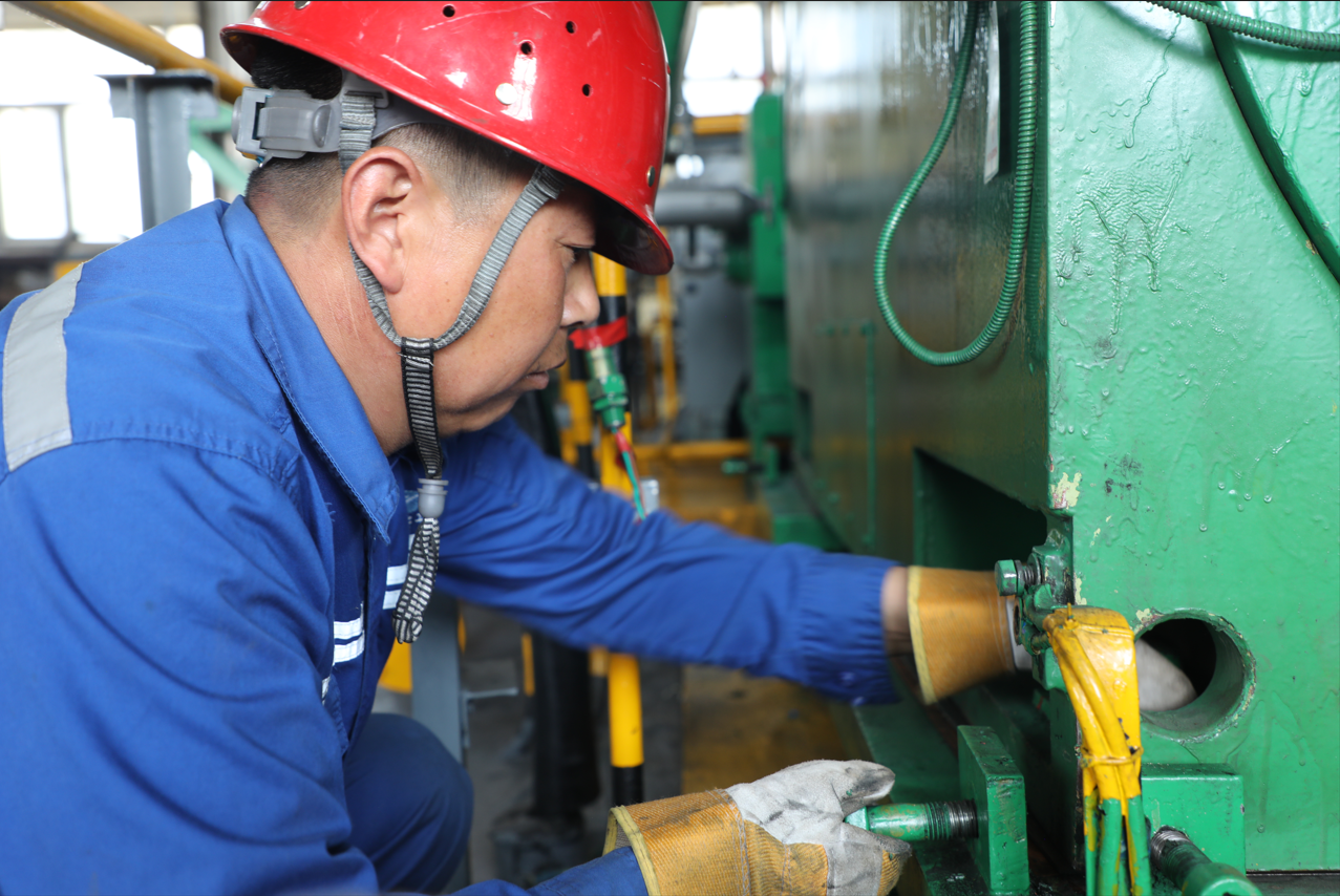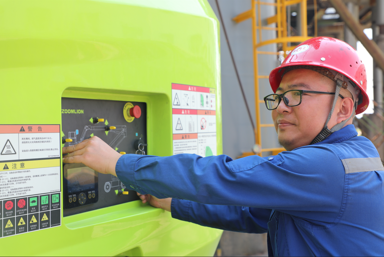 檢修車間預處理維護班馬悅在操作高空作業平臺