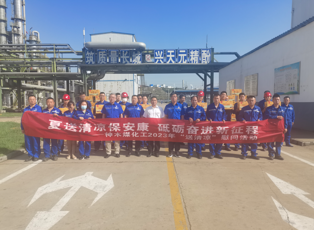 7月25日,神木煤化工公司副總經(jīng)理張振濤到天元公司開展“夏送清涼保安康,砥礪奮進(jìn)新征程”活動,天元公司黨委副書記、總經(jīng)理王勇,副總經(jīng)理柏林紅,財務(wù)總監(jiān)高利強及一線職工參加活動。