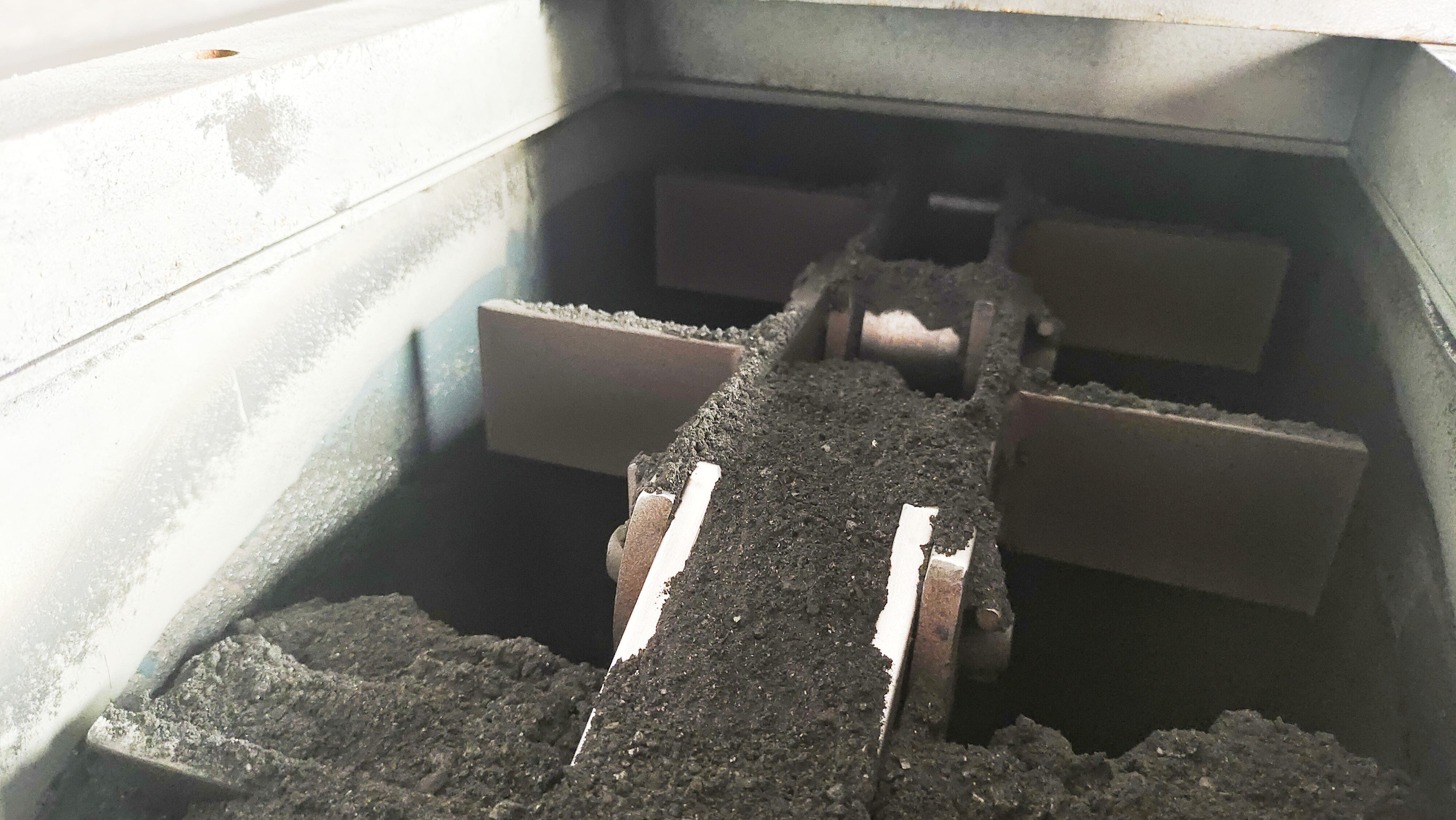 為徹底解決此問題,能源公司將該項目確定為“人人都是創效者,崗位就是利潤源。”攻關項目之一,組織炭材工段班組長以上管理人員和相關技術人員多次進行現場分析和論證,決定拆除原有皮帶輸送機、固定架、料倉除塵罩、除塵管及犁式卸料器,全新安裝FU270輸料刮板機,并在輸灰斗提機、皮帶秤落料口處分別配置DN150除塵管,以輸灰斗提機外側護欄為起點,采用型號YX15-225-900壓型黑色彩鋼瓦進行型鋼焊接、彩鋼封堵作業,最后分別在1#-4#四個粉煤料倉進料口高度為300mm位置處,安裝4臺氣動閘板閥,根據樓板開眼位置配備氣源三聯件、電磁閥、接近開關及閥門定位器,實現全自動上料。