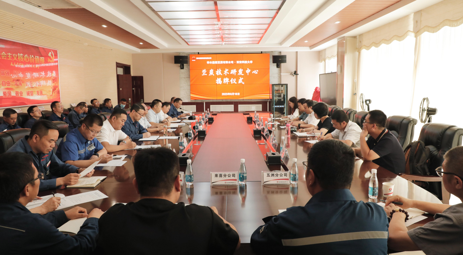 8月18日,神木煤化工能源公司與西安科技大學聯合成立的蘭炭技術研發中心舉行揭牌儀式。神木煤化工公司黨委委員、副總經理馬忠印,副總經理侯衛斌,西安科技大學化工學院黨委書記肖陽、院長張亞婷,能源公司黨委書記、董事長張進峰以及相關部門負責人參加揭牌儀式。