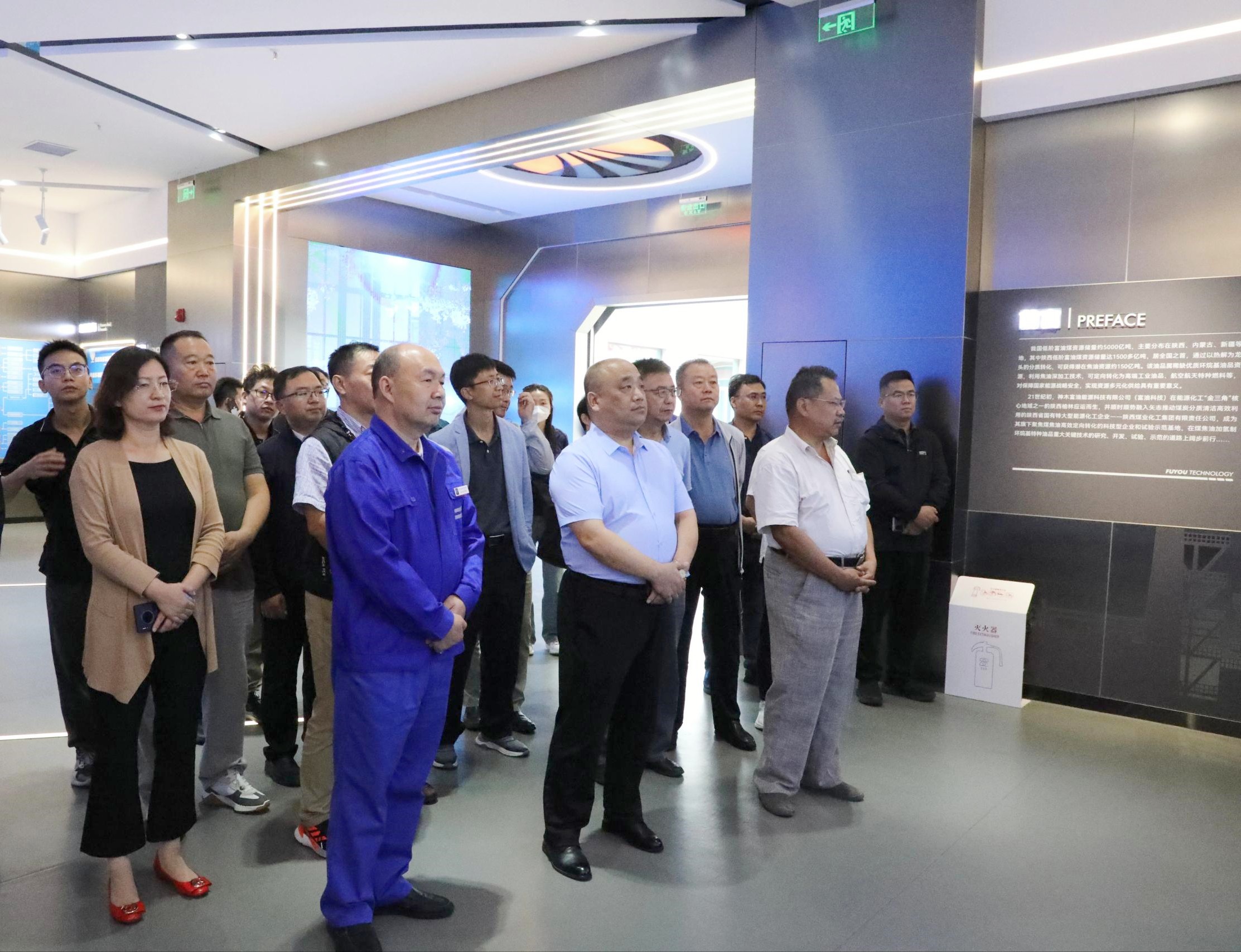 調研中,院士專家一行首先參觀了富油公司文化展廳,詳細了解了企業發展歷程、企業文化、核心工藝、技術優勢、產品特色、市場潛力及裝置運行等情況。隨后乘車觀摩了50萬噸/年煤焦油全餾分加氫制環烷基特種油品成套工業化裝置,近距離感受“最安全、最環保,內在優、外在美”的新型現代化、智能化綠色工廠,并就煤炭分質清潔高效利用與該公司副董事長楊占標進行了深入交流。