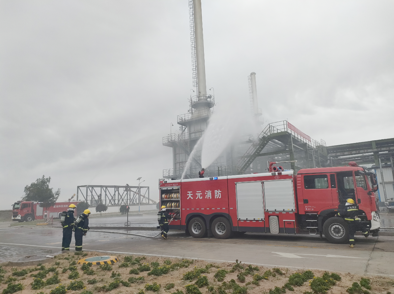 天元公司開展反應加熱爐泄漏著火綜合應急預案演練