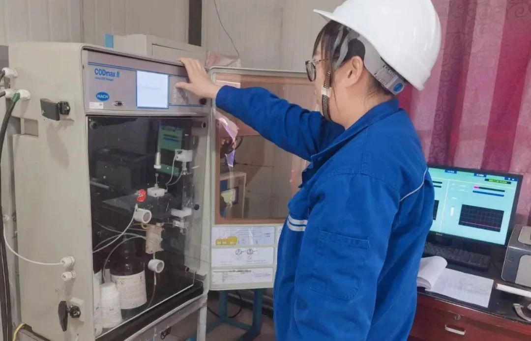 每天在上班前,王春麗都會根據工作任務整理所需的材料和工具,一次把工具帶齊,兩個工具包看著多,但省去了來回跑班房的麻煩。今天她要在水質在線監測站做氨氮、COD、PH計比對。根據規范,外排水采樣泵要移至巴歇爾槽流量計平流段前段,避免采樣泵采樣期間影響流量數據。這便需要短接儀表閥線纜,測試儀表閥是否連通。儀表閥接線盒蓋貼合很緊,需要費點力氣才能打開,使勁時,她秀眉微微蹙在一起。王春麗用上了各種撬棍工具,在纖弱的胳臂帶動下,接線盒的螺絲被扳手一點一點擰緊。測完COD,她又前往分餾塔間平臺,穿樓梯時要經過密集的腳手架,她小心翼翼爬越、穿過孔洞,尋找適合的安全帶系掛點,漿洗得干凈藍色工作褲,不知何時就蹭上了些灰塵和油污。