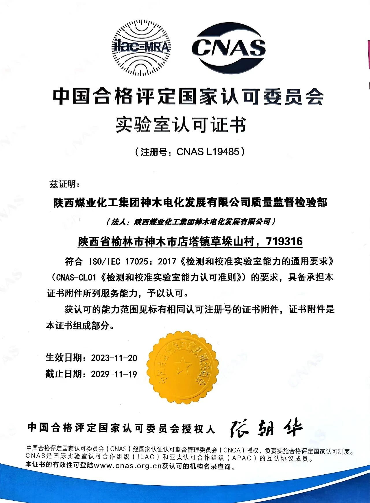 近日,神木煤化工電化公司成功獲批中國合格評定國家認可委員會(CNAS)頒發的實驗室認可證書,正式躋身國家級實驗室行列。