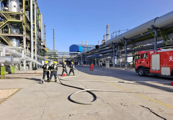 天元公司加氫車間開展高換封頭泄漏著火事故應急演練