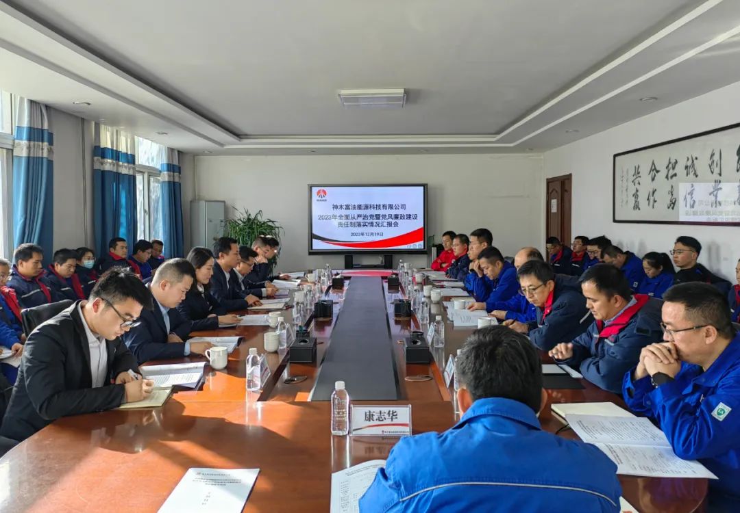 12月19日,神木煤化工公司紀委書記田崟墻帶領黨風廉政建設第一檢查考核組,對富油公司2023年全面從嚴治黨暨黨風廉政建設責任制落實情況進行考核。公司領導班子成員、中層管理人員、生產一線員工代表40余人參加了考核匯報會。