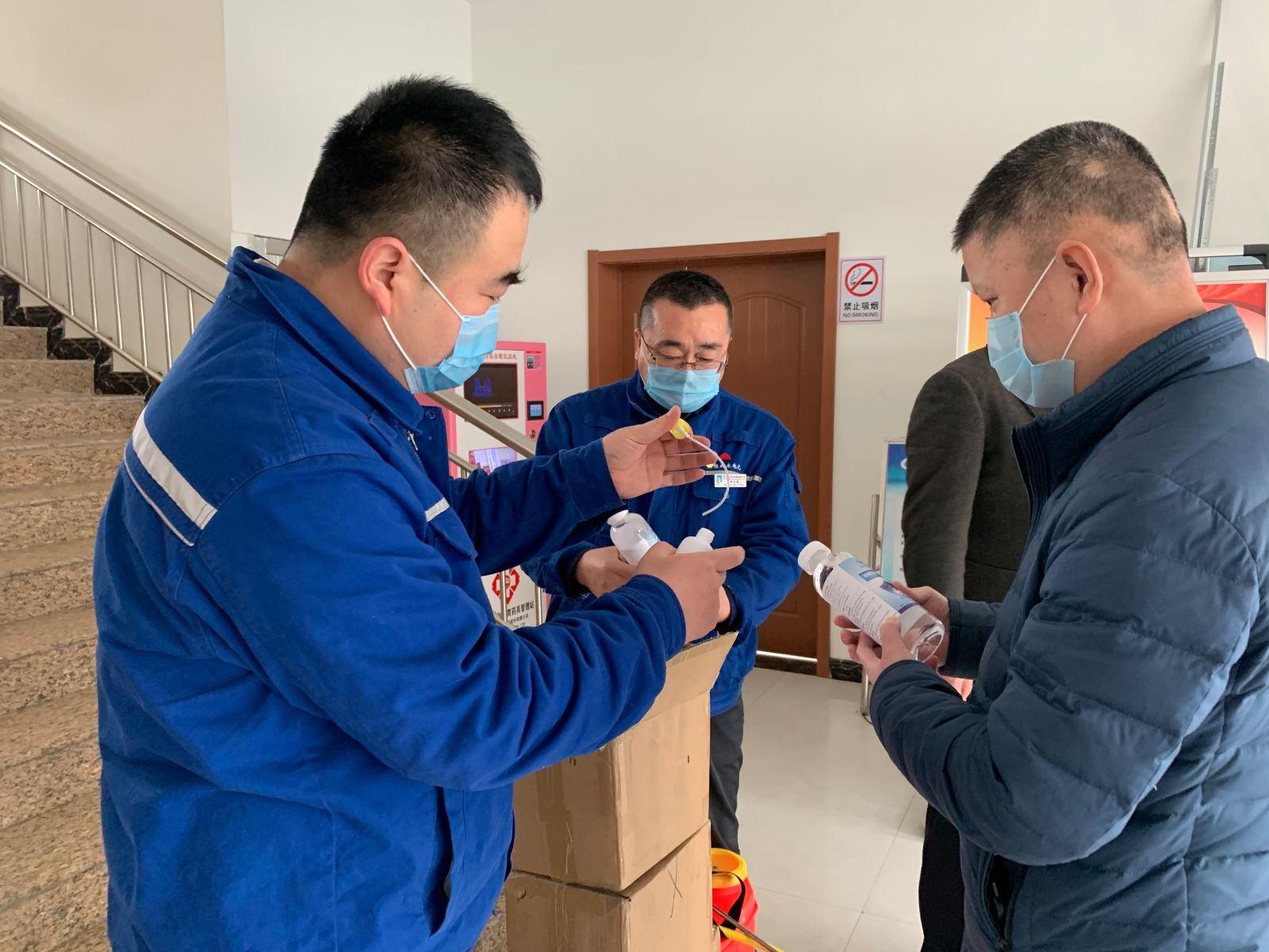 3月2日下午,神木煤化工電化公司工會主席任建軍一行,對神木市麟州街道辦事處人民路社區防疫一線人員進行慰問并送去了抗疫物資。
