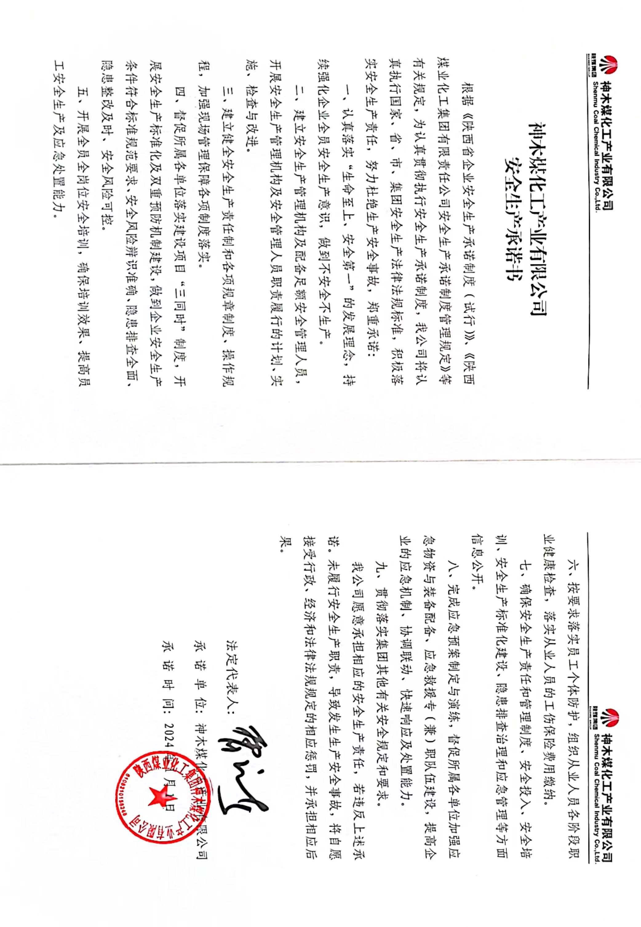 神木煤化工產(chǎn)業(yè)有限公司2024年度安全生產(chǎn)承諾書