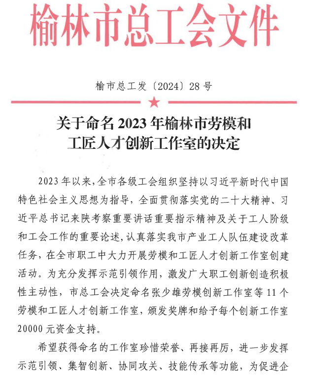 近日,從榆林市總工會傳來喜訊,所屬電化公司辛文輝勞模創新工作室被命名為榆林市勞模和工匠人才創新工作室;能源公司獲得榆林市勞動競賽先進集體稱號;天元公司檢修車間維修工李靖飛獲得榆林市勞動競賽先進個人稱號;富油公司環烷基油中心獲得榆林市工人先鋒號。
