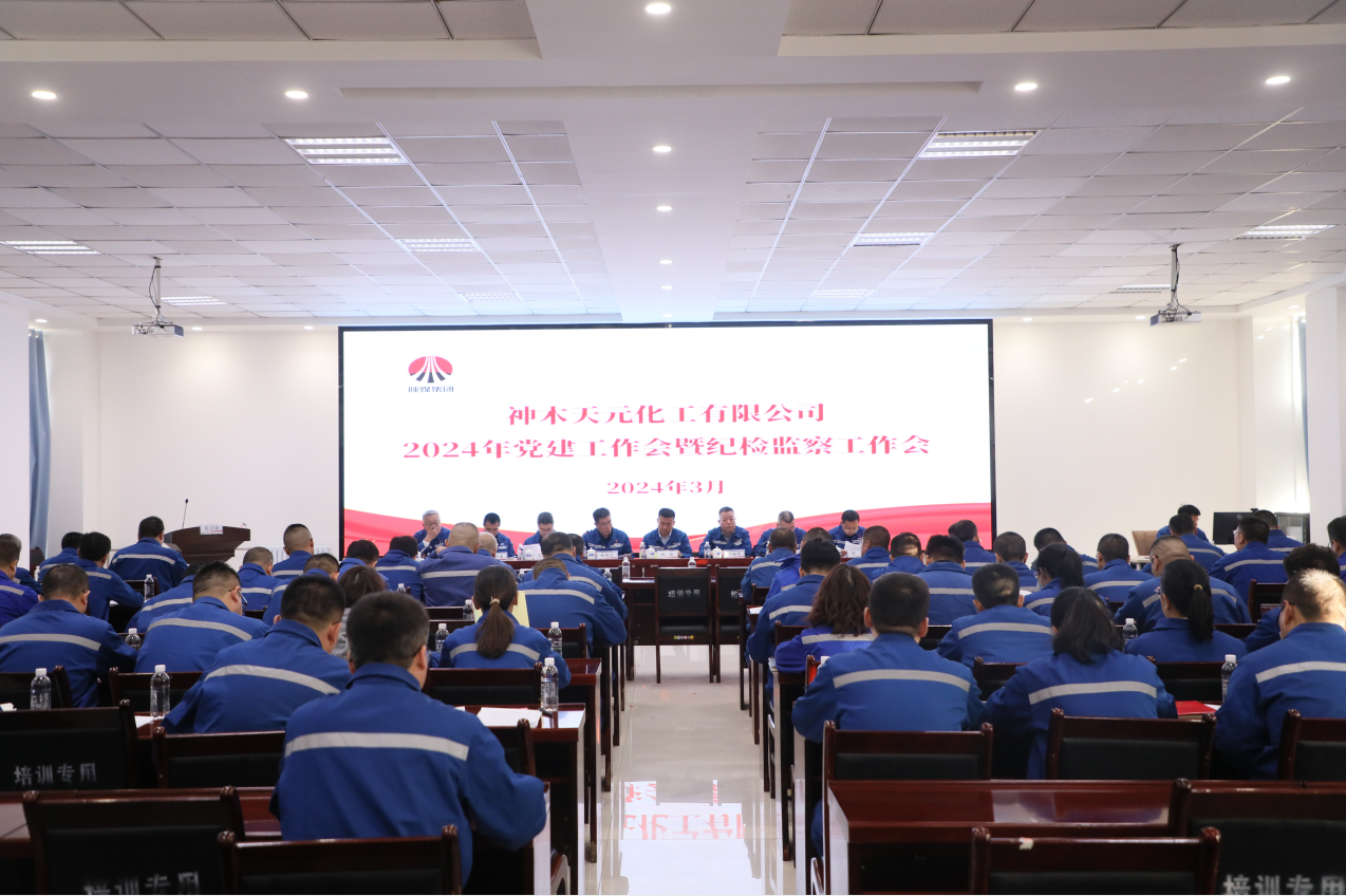 近日,神木煤化工天元公司召開2024年黨建工作會暨紀檢監察工作會,天元公司領導班子成員,各黨支部書記、支委成員,各車間、中心、部室負責人,黨群工作部人員參加會議。