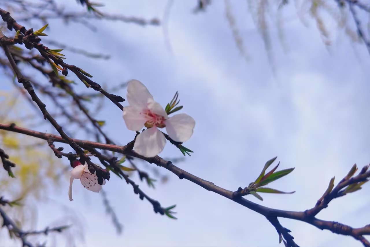 一晃人間又一春,淺聽和風喃喃語。告我如今,告我如今,草也青青,木也欣欣,枝頭望去桃花嬌艷。
