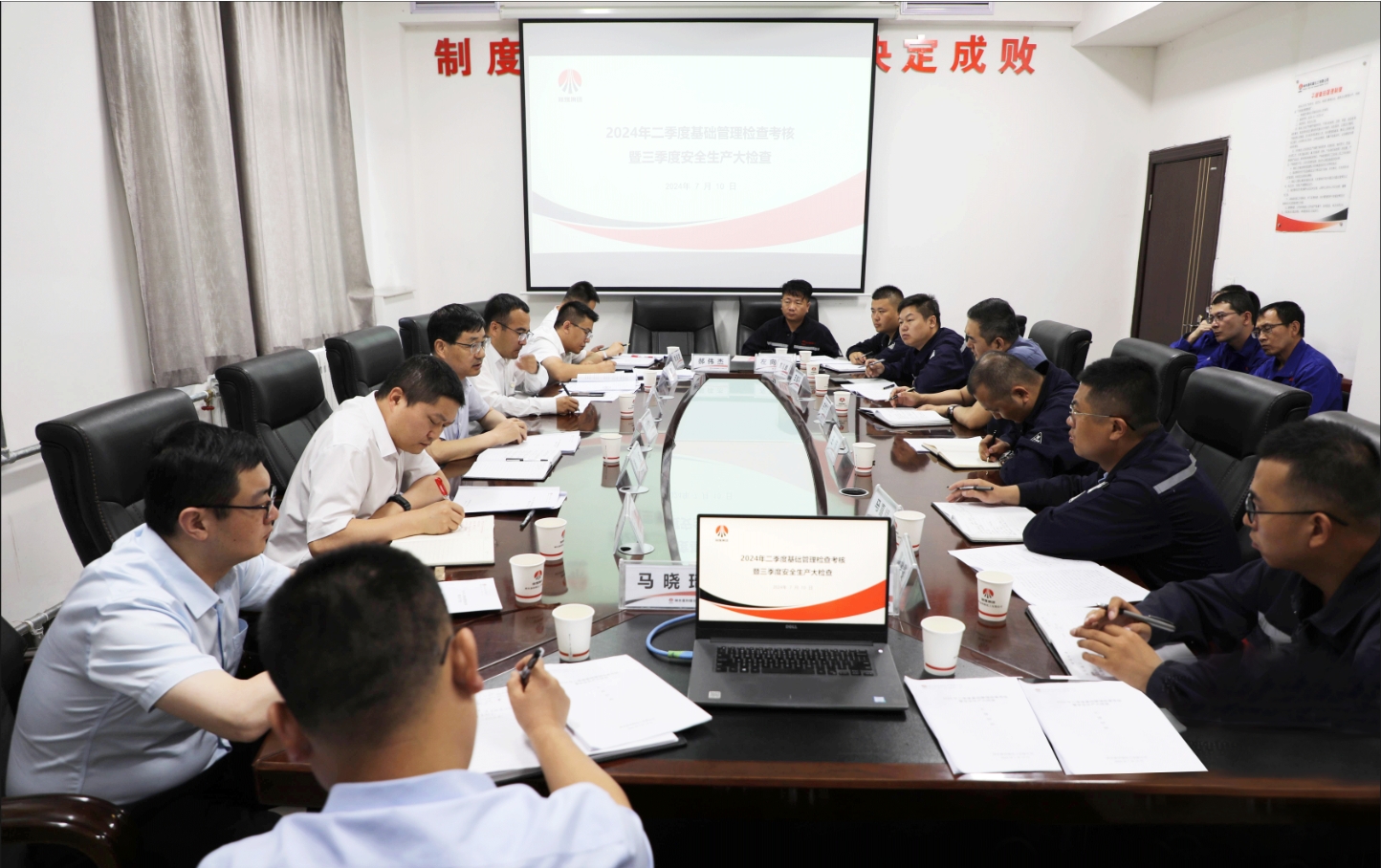 7月10日,公司黨委副書(shū)記、總經(jīng)理辛文輝,副總經(jīng)理問(wèn)緒忠一行到泰和公司開(kāi)展2024年二季度基礎(chǔ)管理考核暨三季度安全生產(chǎn)大檢查。泰和公司領(lǐng)導(dǎo)班子成員及相關(guān)業(yè)務(wù)負(fù)責(zé)人配合檢查。