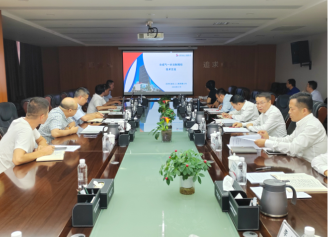 7月17日,北京石油化工工程有限公司副總經理楊礫一行6人到公司進行合成氣一步法制烯烴技術交流。公司黨委副書記、總經理辛文輝,黨委委員、副總經理馬忠印,生產環保規劃部、天元公司、富油公司、東鑫垣公司相關負責人參加會議。