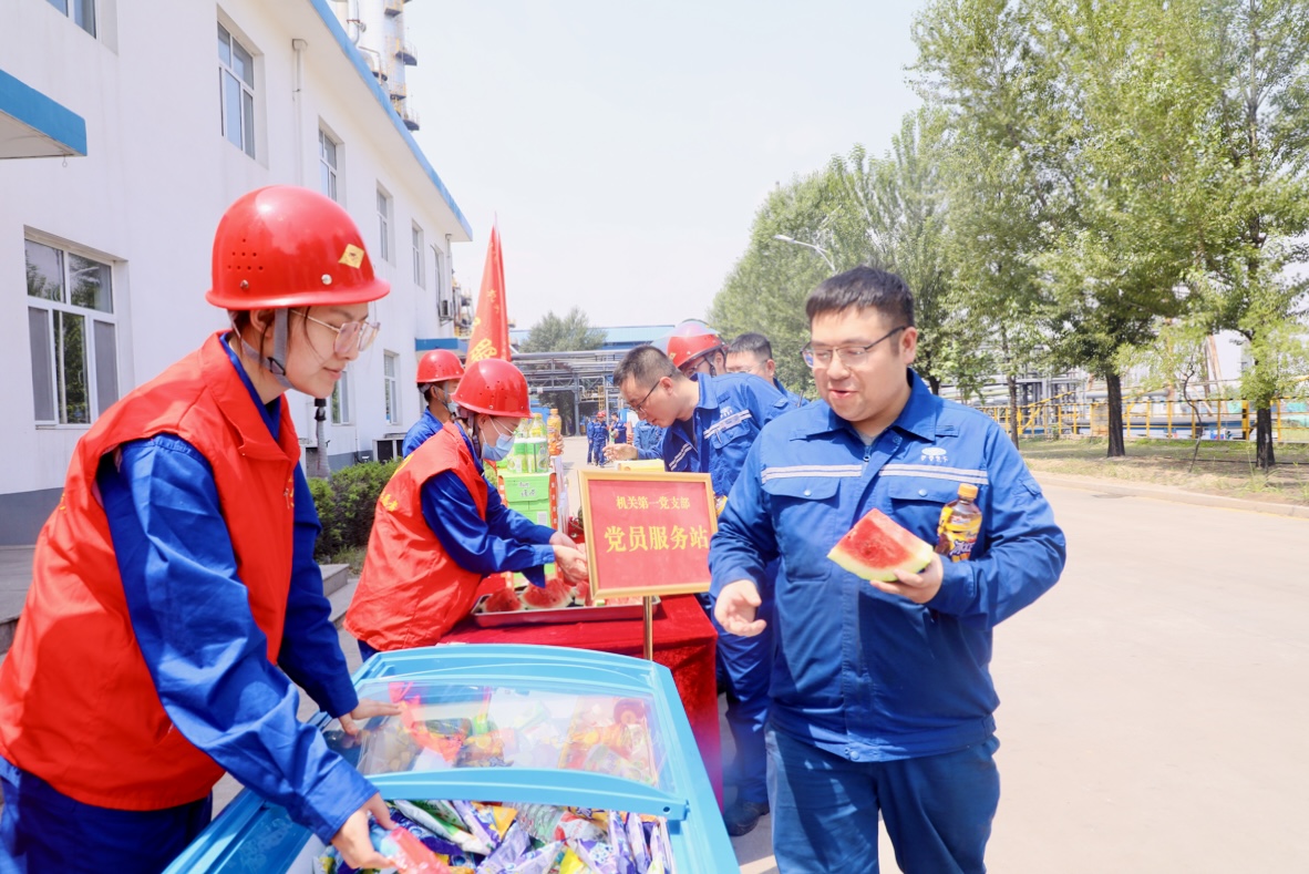 守好后勤服務(wù)崗。檢修期間,每日除正常就餐人員外,檢修加班人數(shù)倍增,為確保檢修期間一線員工以飽滿的精神投入到大檢修工作中,天元公司從細(xì)節(jié)入手,每天嚴(yán)格落實(shí)配餐、訂餐情況,每周更換食譜,調(diào)整花色品種,全天供應(yīng)消暑綠豆湯、清涼西瓜,保障大家吃的放心吃的舒心。同時(shí),志愿服務(wù)隊(duì)在幕后與檢修人員并肩“作戰(zhàn)”,在各個(gè)檢修區(qū)域設(shè)立檢修服務(wù)站,堅(jiān)持每天攜帶“清涼物資”來到檢修現(xiàn)場(chǎng),用心做好服務(wù)工作,及時(shí)快速滿足了檢修人員的需求,受到了檢修人員的好評(píng)。