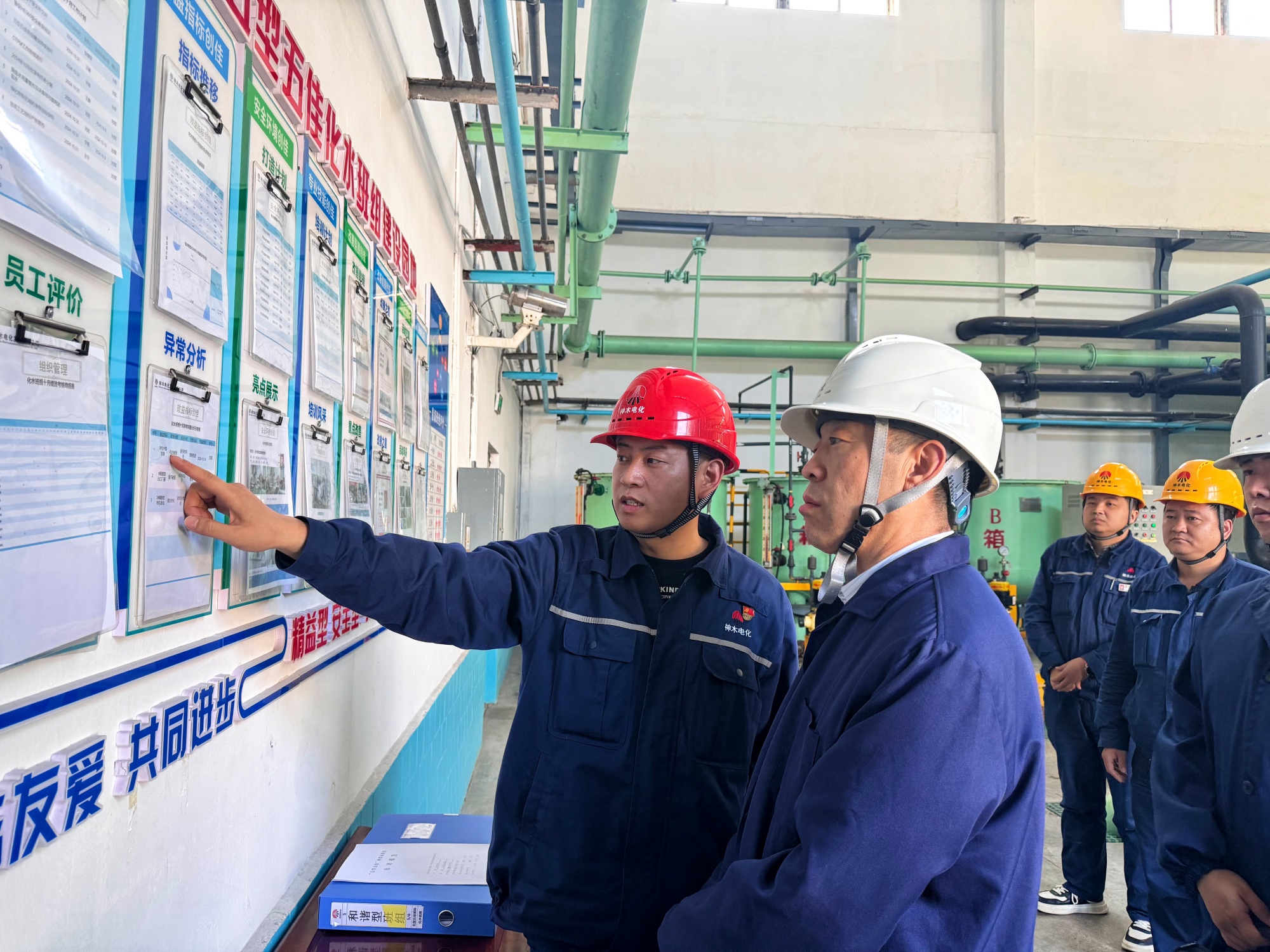 檢查組來到熱電鍋爐班組、汽機班組、電氣班組、化水班組、電石車間電儀班組、電石爐三工段6個示范創建點,認真查看了班組建設臺賬資料、陣地建設、活動開展、制度完善等情況,對“一長四員”進行隨機訪談,提問“五型五佳”具體內容,詳細了解各班組建設工作推進進程和遇到的困難,聽取職工群眾的合理化建議。各班組均積極配合,以重點創建的一個“型”向檢查組展示了各自的創建特色,展現了基層班組的文化和活力。