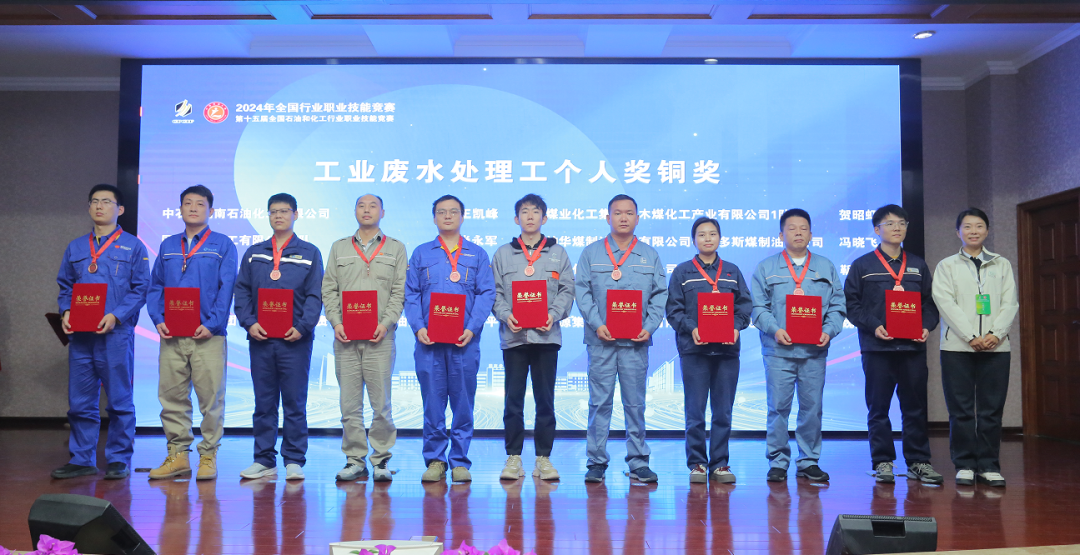 近日,2024年全國行業職業技能競賽暨第十五屆全國石油和化工行業職業技能競賽圓滿落幕。經過三天激烈角逐,能源公司賀昭蝦所在的神木煤化工1隊獲得工業廢水處理工團體二等獎、賀昭蝦獲得該工種競賽個人銅獎;檢維修中心郭江平所在的神木煤化工2隊獲得化工儀表維修工團體三等獎。