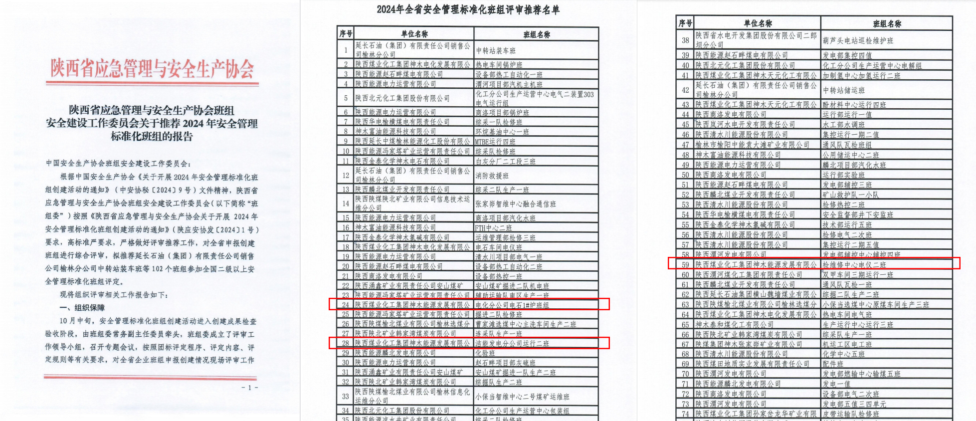 近日,從陜西省應急管理與安全生產協會獲悉,神木煤化工能源公司電化分公司電石1#爐班、潔能發電分公司運行二班、檢維修中心電儀二班獲得全國二級以上安全管理標準化班組評定審核資格。