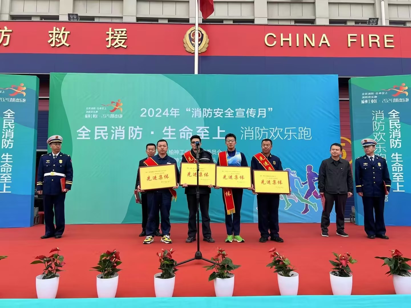 近日,神木煤化工富油公司在神木市消防安全委員會組織召開的“全民消防 生命至上”119宣傳月歡樂跑活動儀式中榮獲2024年度“119消防獎先進集體”榮譽稱號。