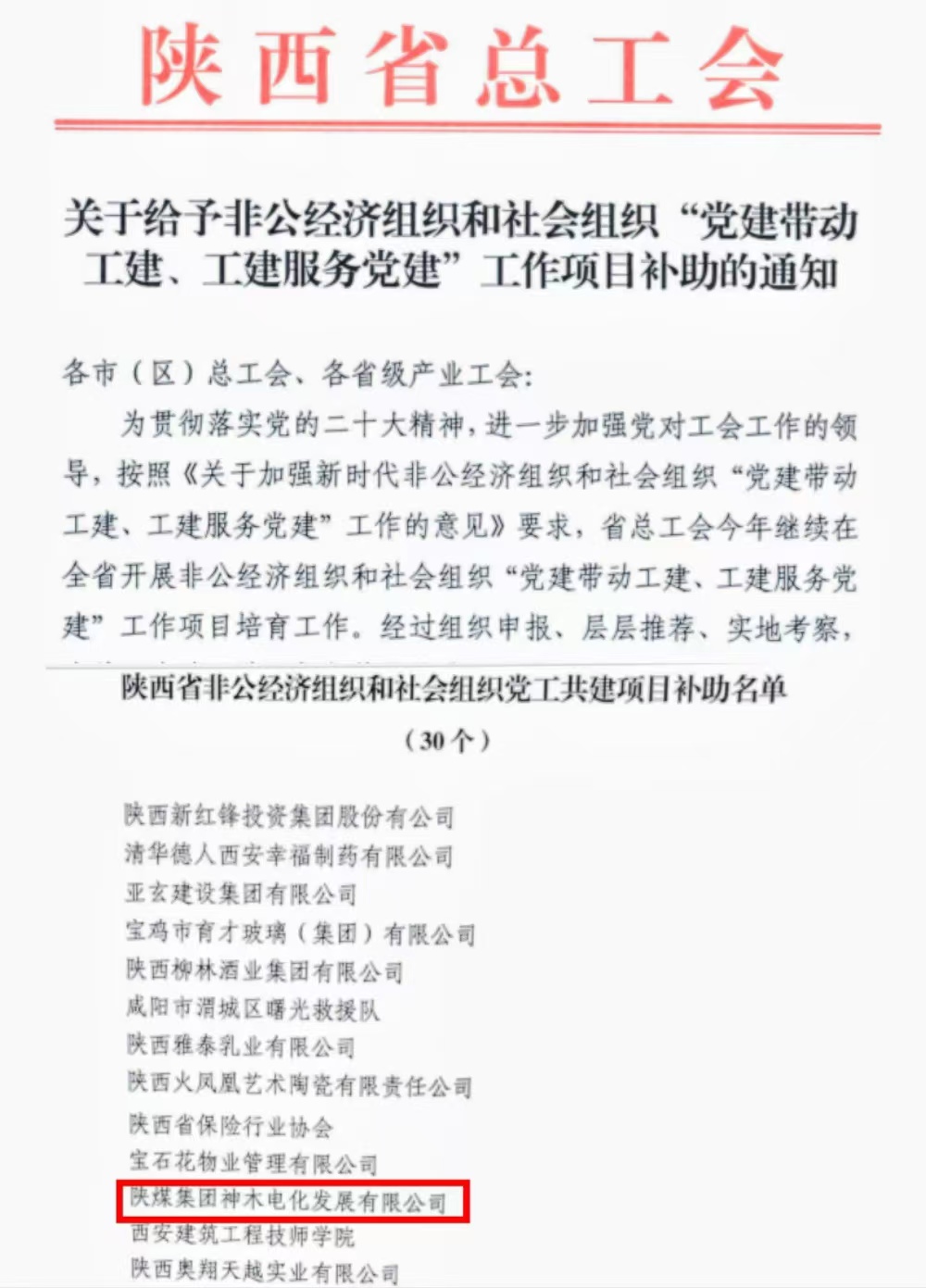 電化公司獲批陜西省總工會“2024年度黨工共建項目補助”專項資金