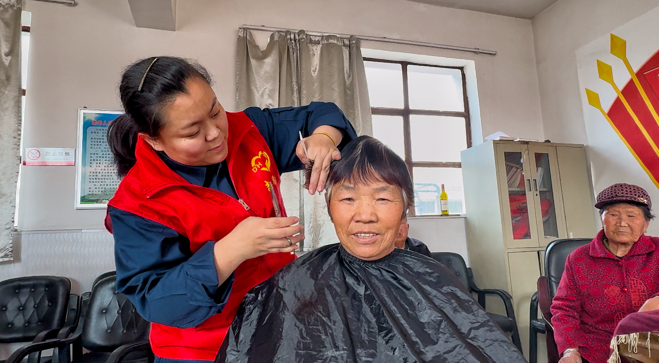 “大娘,您想剪個什么發型?”電石黨支部張妮將理發手藝帶到了養老院。她一邊溫柔地問詢,一邊拿出理發工具,簡單交流后,便開始揮舞著手中的理發器,伴隨著“咔咔”的聲音,老人們換上了新發型,精神抖擻、神采奕奕。排隊等待理發的間隙,貼心的志愿者小心翼翼地握起老人的手,耐心為其修剪指甲、按摩、捶背捶腿,眼神里充滿了專注和關愛。