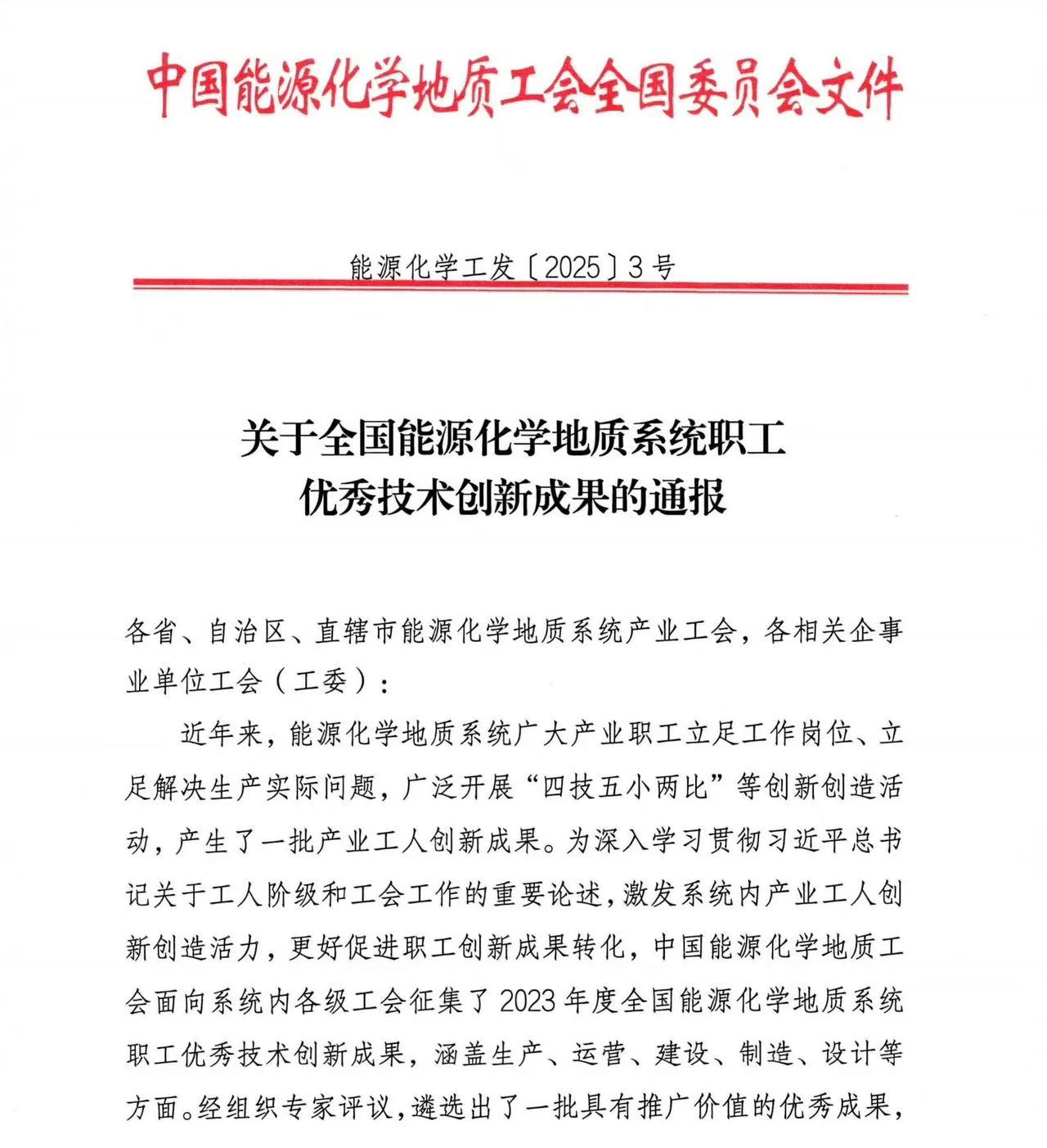 全國(guó)能源化學(xué)地質(zhì)系統(tǒng)優(yōu)秀職工技術(shù)創(chuàng)新成果評(píng)比由中國(guó)能源化學(xué)地質(zhì)工會(huì)全國(guó)委員會(huì)主辦,每年舉辦1次,涵蓋生產(chǎn)、運(yùn)行、建設(shè)、制造、設(shè)計(jì)等方面,經(jīng)行業(yè)專家評(píng)議,旨在大力弘揚(yáng)勞模精神、勞動(dòng)精神和工匠精神,遴選出一批具有推廣價(jià)值的技術(shù)創(chuàng)新成果。近年來(lái),公司始終高度重視職工創(chuàng)新能力培養(yǎng),建立健全職工創(chuàng)新體系,深化群眾性創(chuàng)新活動(dòng),大力弘揚(yáng)勞模精神、勞動(dòng)精神、工匠精神,以“五小”創(chuàng)新活動(dòng)為引領(lǐng),鼓勵(lì)職工立足崗位激發(fā)靈感,以小切口展示創(chuàng)新能力,提升職工參與創(chuàng)新創(chuàng)造的積極性和主動(dòng)性,涌現(xiàn)出一大批優(yōu)秀創(chuàng)新成果。下一步,公司將繼續(xù)筑牢職工成長(zhǎng)成才階梯,堅(jiān)持以職工技術(shù)創(chuàng)新為主體,不斷夯實(shí)創(chuàng)新鏈條完整、體制機(jī)制健全、保障措施完善的群眾性技術(shù)創(chuàng)新體系,加大成果培育力度、拓寬資源共享渠道、搭建職工創(chuàng)新實(shí)踐平臺(tái),積極推動(dòng)職工優(yōu)秀創(chuàng)新成果向?qū)嶋H生產(chǎn)力轉(zhuǎn)變,為公司治虧創(chuàng)效、改革發(fā)展、轉(zhuǎn)型升級(jí)匯聚創(chuàng)新動(dòng)能。