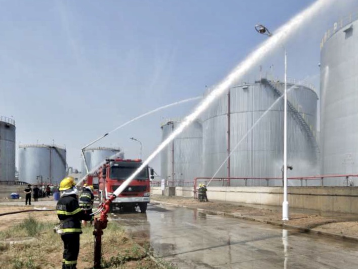 今年六月是全國第19個(gè)安全生產(chǎn)月,按照東鑫垣公司安全生產(chǎn)月統(tǒng)一部署,6月12日上午,府谷縣應(yīng)急管理局和該公司聯(lián)合主辦的儲(chǔ)油罐區(qū)T-54206油罐泄漏著火事故應(yīng)急演練在該公司制油分廠成品油罐區(qū)開展。府谷縣應(yīng)急管理局、廟溝門鎮(zhèn)人民政府、該公司相關(guān)部門人員等100余人參加演練。