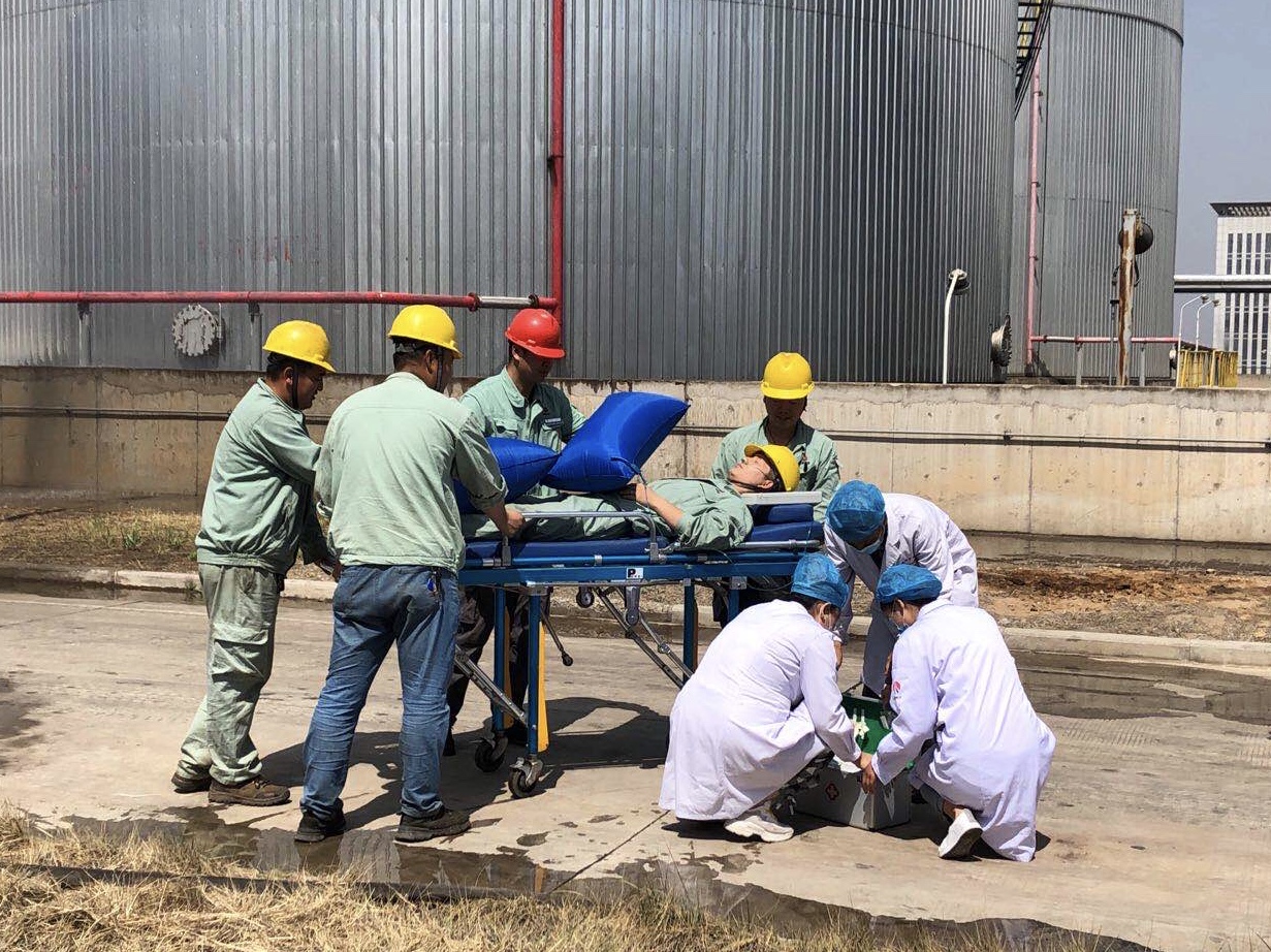演練模擬6月12日上午10點(diǎn),該公司制油分廠罐區(qū)兩名巡檢工在例行日常巡檢時(shí)發(fā)現(xiàn)儲(chǔ)油罐T-54206泄漏引起著火事故,其中一名巡檢工煙氣中毒暈倒。該公司緊急啟動(dòng)生產(chǎn)安全事故應(yīng)急預(yù)案,并將火情向廟溝門人民政府及府谷縣應(yīng)急管理局報(bào)告。該公司消防隊(duì)、醫(yī)療和后勤保障組、設(shè)備搶修組、安全環(huán)保組、技術(shù)組、環(huán)保監(jiān)測(cè)組等專業(yè)處置組緊急出動(dòng)、協(xié)同配合,對(duì)受傷人員進(jìn)行有效救援處置,火情完全得到控制并逐漸消除,應(yīng)急演練圓滿完成。