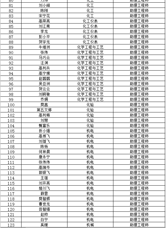 經公司工程系列專業技術職務中級任職資格評審委員會2020年1月11日評審會議表決,2019年度工程系列專業技術職務初中級任職資格共408人通過認定、評審(其中:初級279人,中級129人),現將認定、評審通過人員名單公示如下: